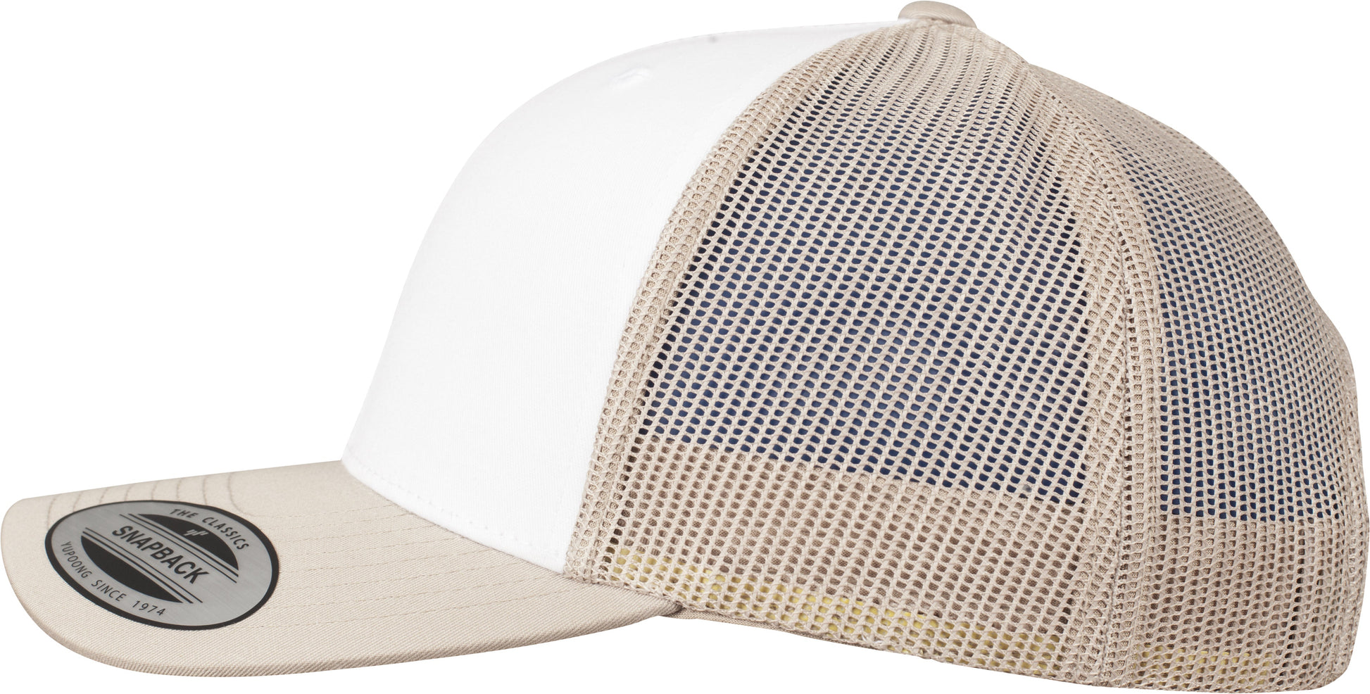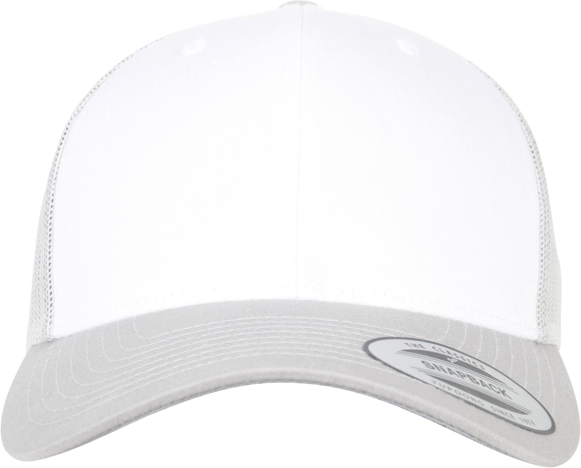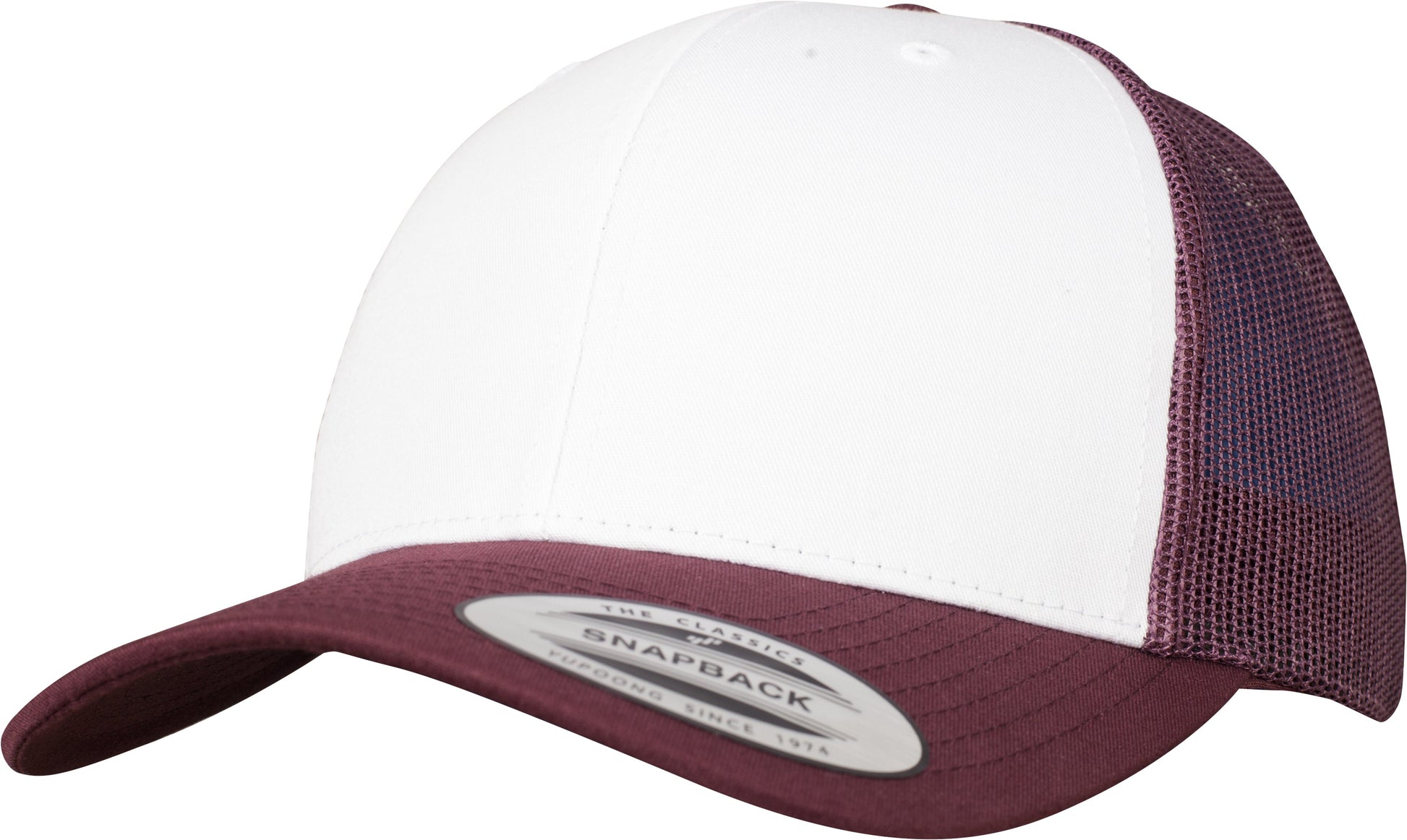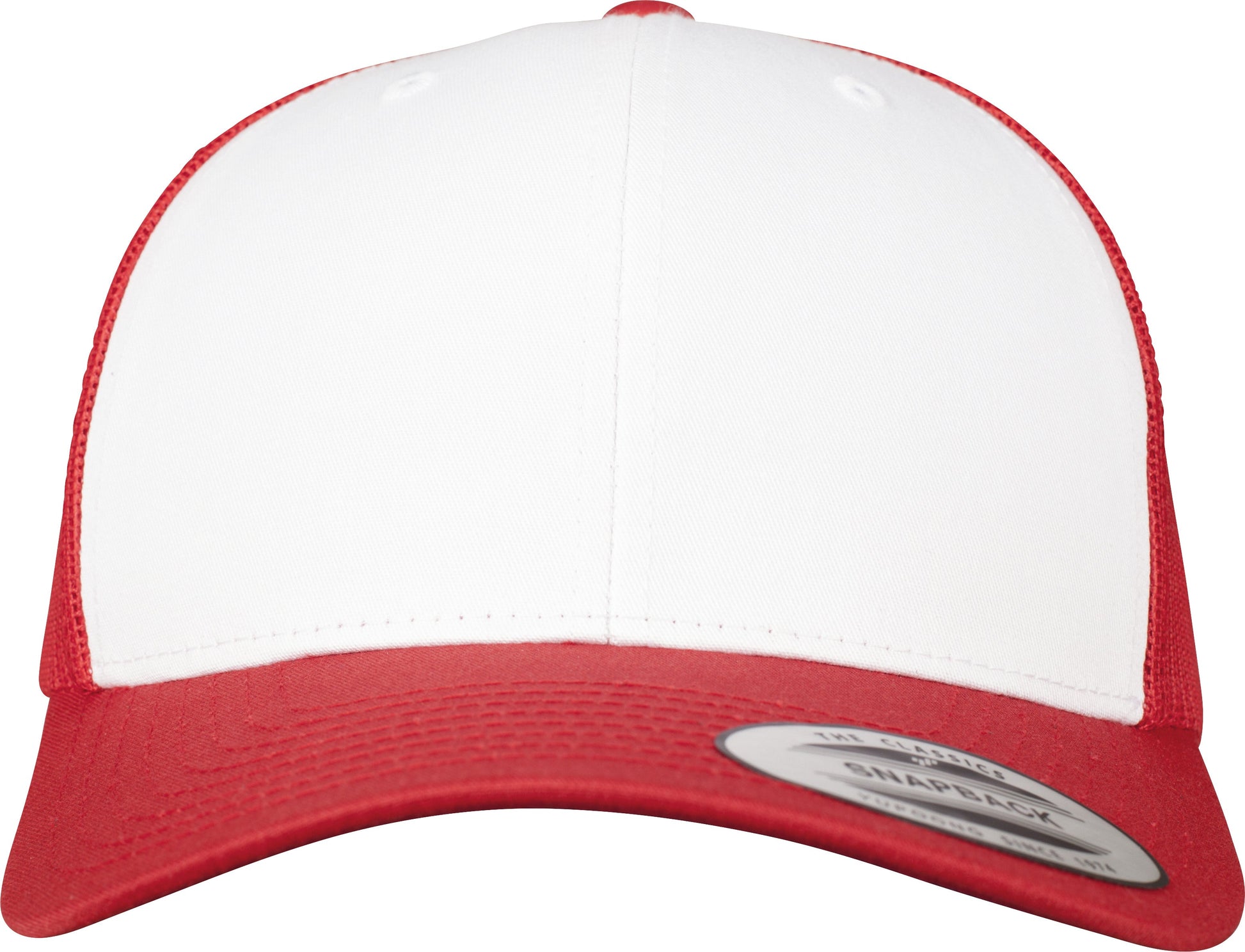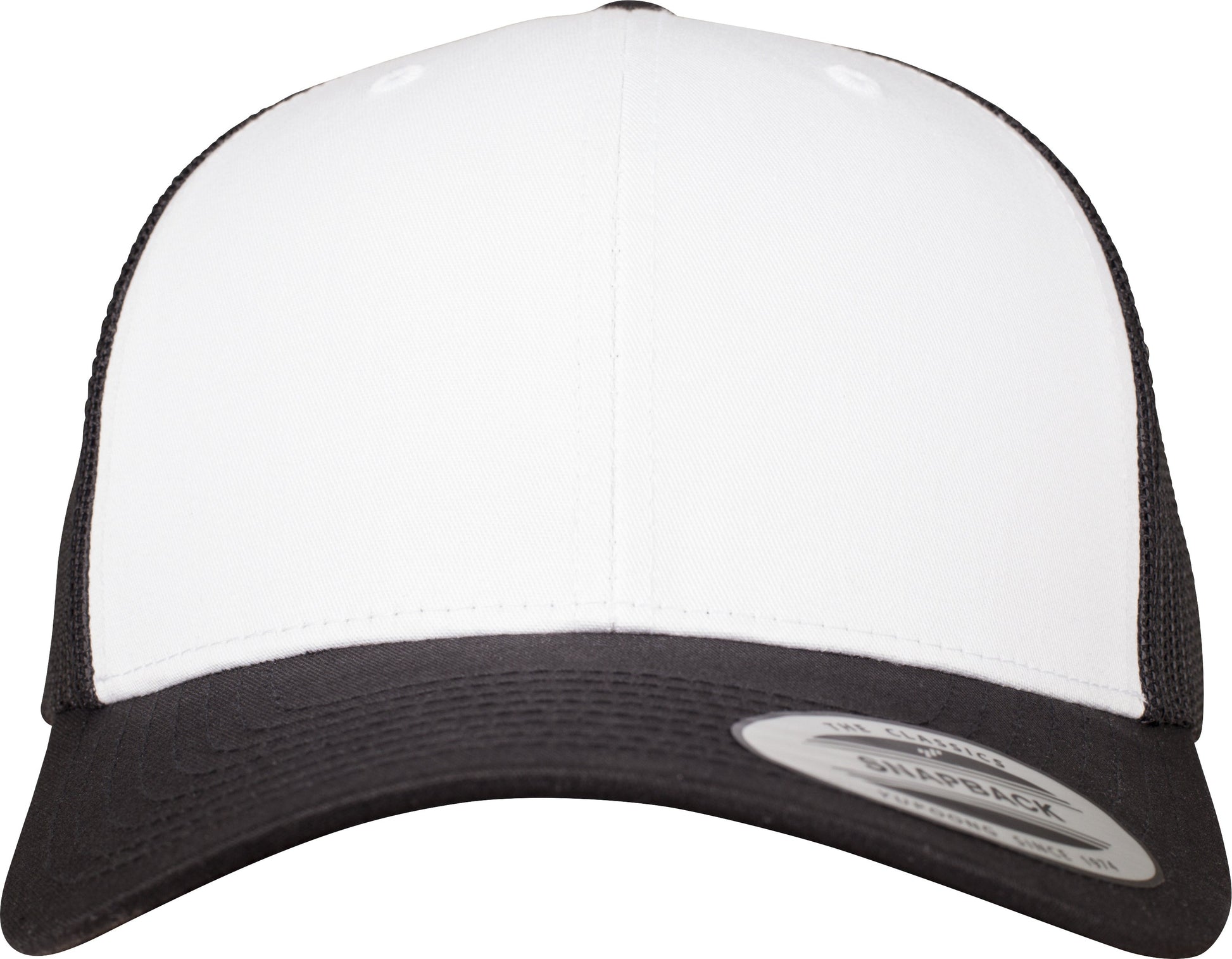 Classic trucker cap. White front. Matching brim. Mesh back in contrasting colour. Lower profile. Structured canvas front. Center seam in snapback style. BSCI certified. WRAP certified.