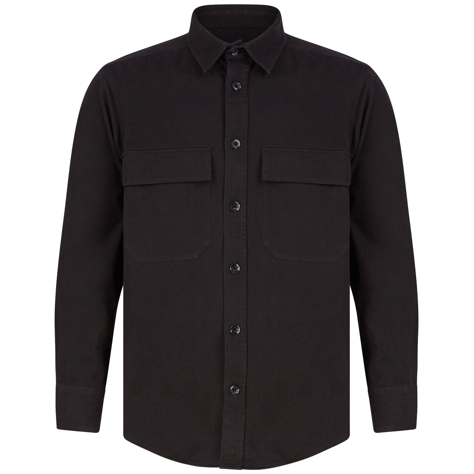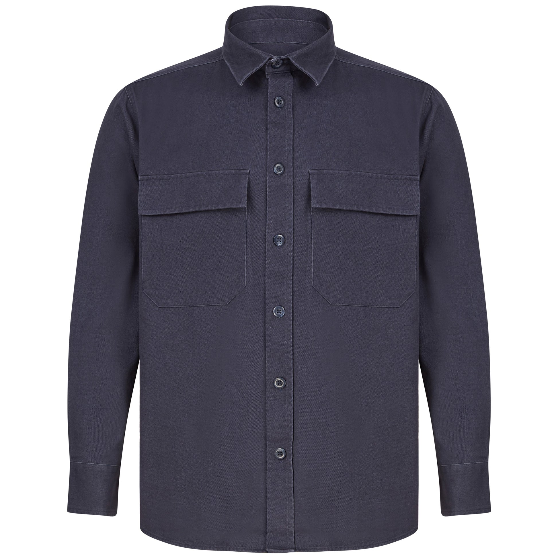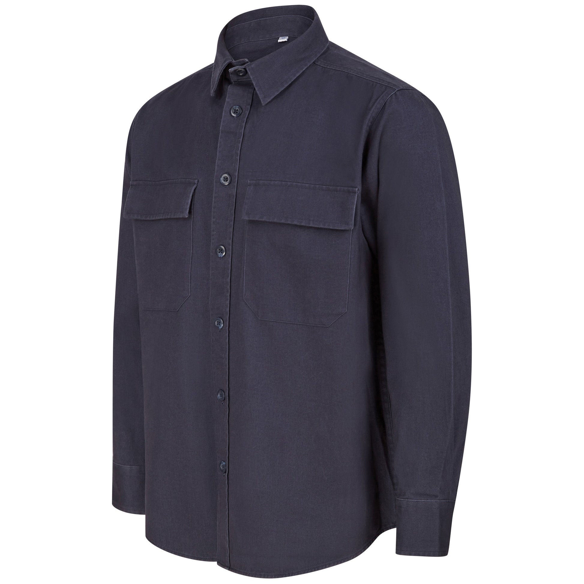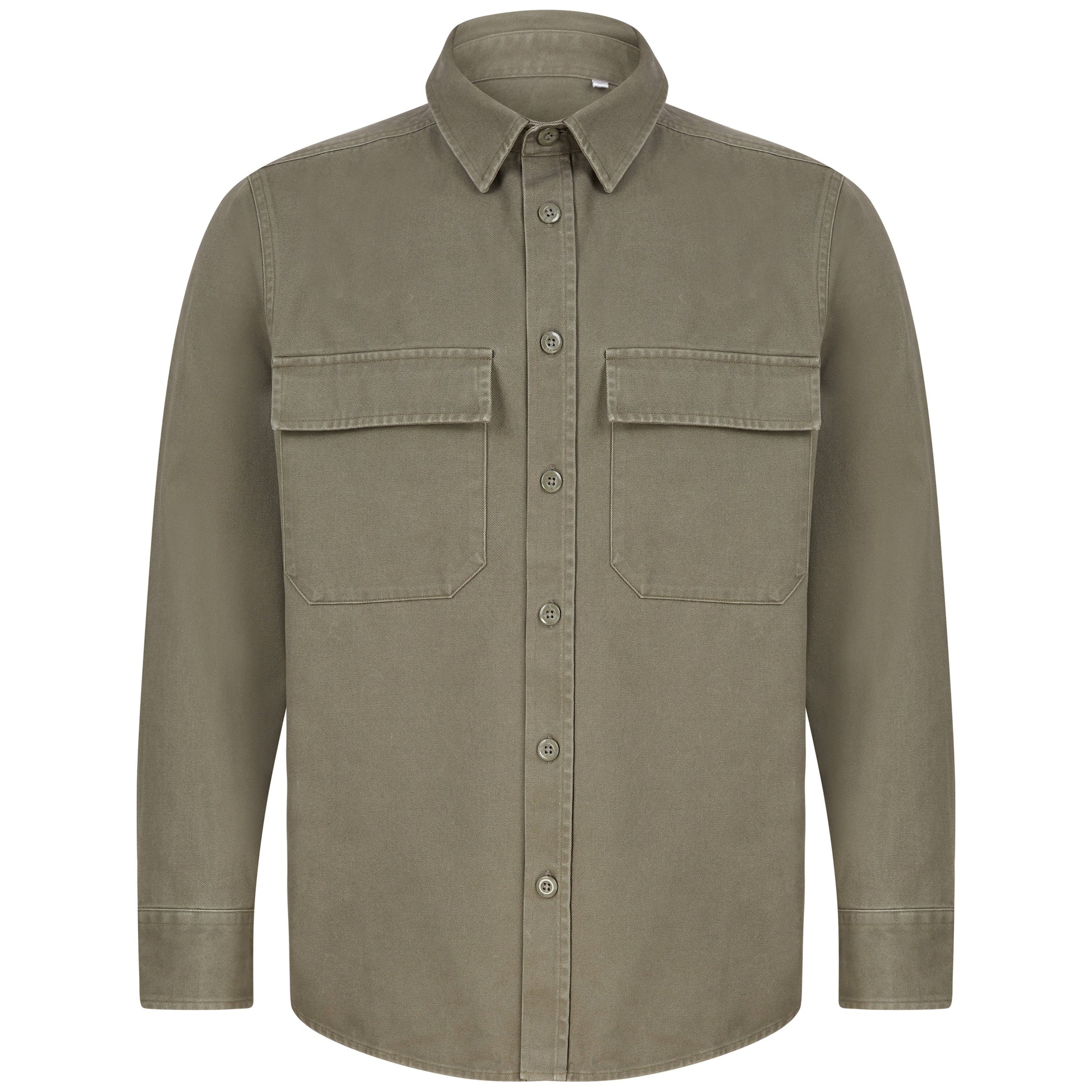 Heavyweight overshirt. Heavy garment wash. Back yoke. Twin-needle topstitching. Plastic horn-effect buttons. Mitred patch pockets with flap. Mitred cuff and placket with button fastening. Curved hem. Forward shoulder seam. Tag-free for easy rebranding. SEDEX certified. BSCI certified.