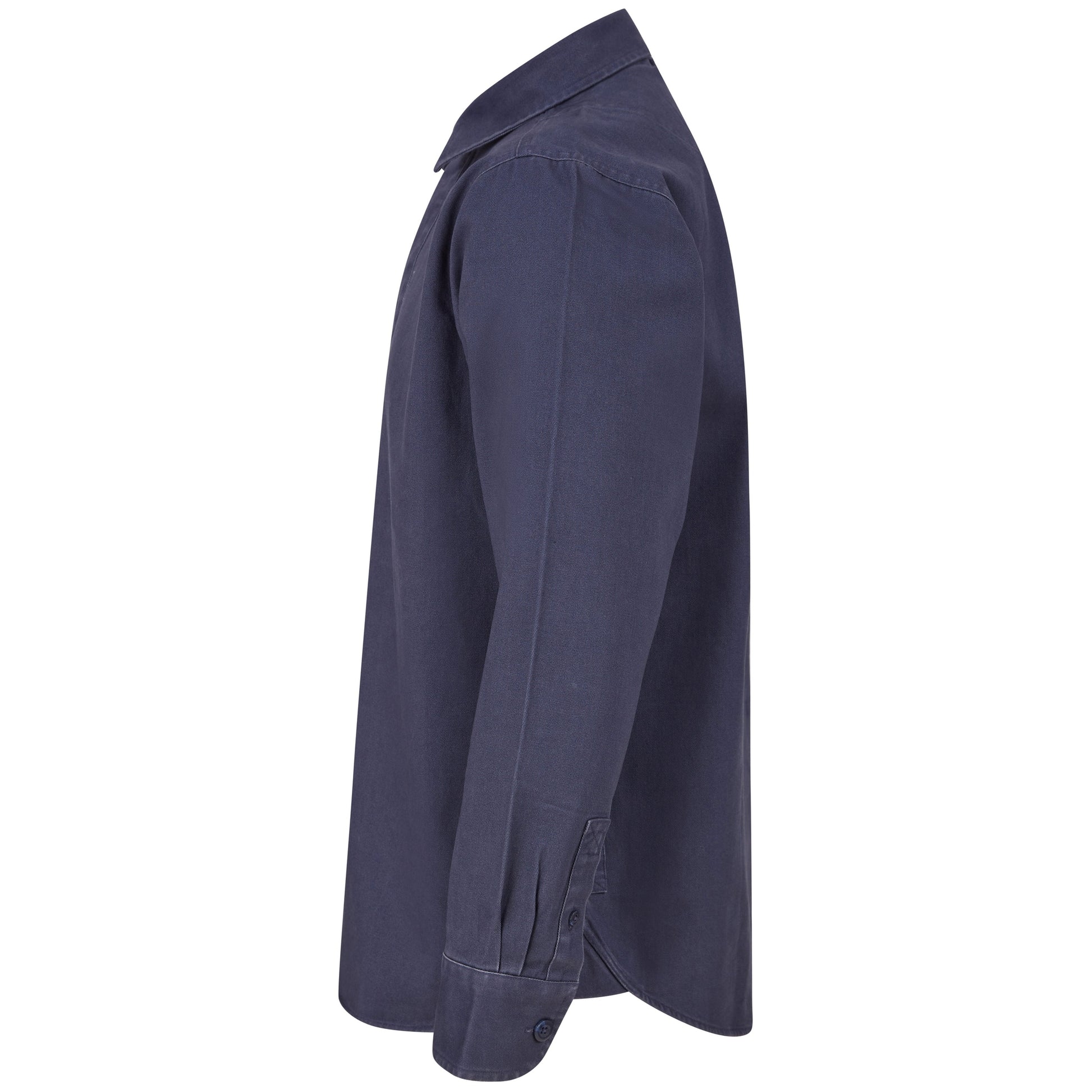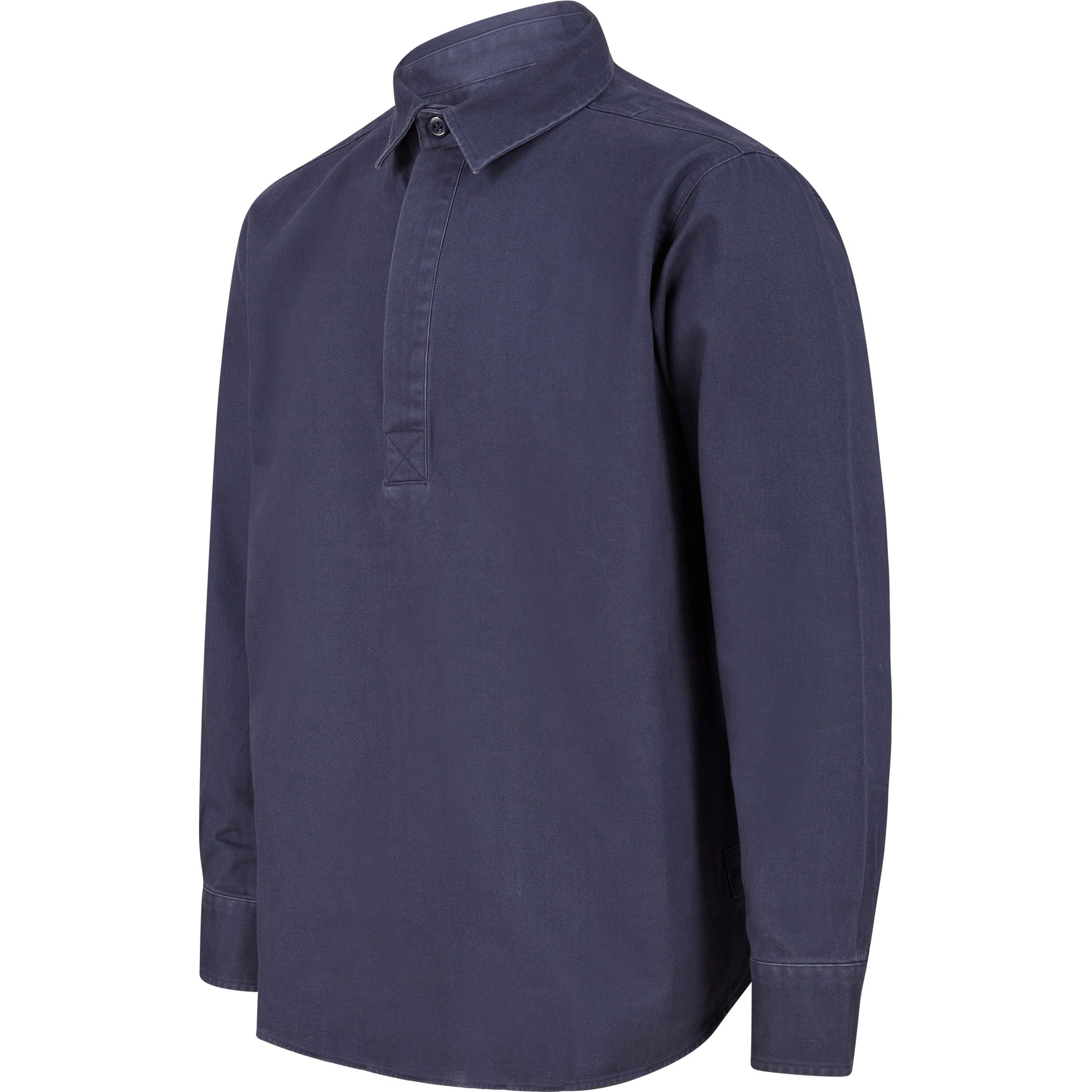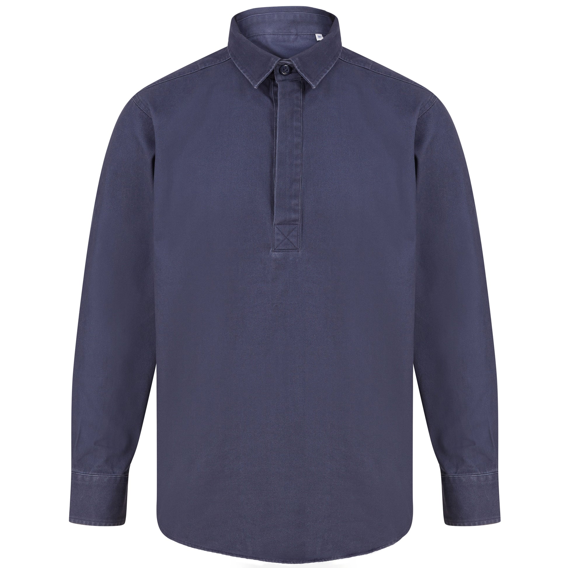 Long-sleeved plain drill shirt. Pullover with concealed button fastenings. Heavy garment wash. Adjustable button cuff and placket. Shaped hem. Back neck hanging loop. Back neck buggy. Self-fabric vent inserts. Tag-free for easy rebranding. SEDEX certified. BSCI certified.