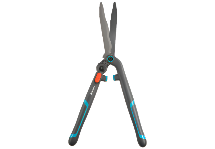 The Hedge Clippers 2in1 EnergyCut by GARDENA are ideal for quick cuts and give you extra power any time you need it while cutting a hedge or shrubs. At the touch of a button, you activate the engageable gear. As soon as it is switched on, the opening angle of the clippers increases, so that 2.5 times more power is converted. This allows you to cut thicker branches with little effort in no time at all. When the extra gear is not engaged, the shears are also ideal for quickly cutting thin branches. Robust, yet light materials are used for the hedge trimmer, so it has a low weight, which means you can cut longer without getting tired. Much emphasis is also placed on handling and working comfort: The EnergyCut has ergonomically designed round symmetrical ErgoTec handles that sit well in your hands. An in-built soft buffer is incorporated to absorb shocks and protect your wrists. Your hands are also always in a safe working position thanks to the optimum working angle when cutting. In addition to the practical extra gear, the blades themselves are impressive: They are made of non-stick steel and are particularly durable. Thanks to the waved grinding of the blades, high efficiency is also achieved when cutting larger areas, as leaves and twigs do not slip away but are held in the cutting area. A branch cutter is integrated at the base so you can easily cut off individual thick branches. The 2in1 EnergyCut is a quality product that GARDENA offers a 25-year warranty on. Express your vision with precision. Easy to use, effective and durable cutting tools for creative gardeners.