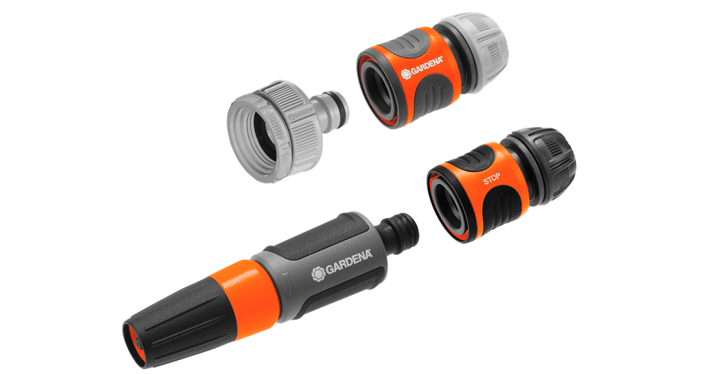 The GARDENA Basic Set supports your cleaning and watering around the house and in the garden. The starter set with cleaning nozzle, tap connector, adapter, hose connector and water stop ensures a secure garden hose connection to the tap. All parts deliver long-lasting use due to high-quality manufacture. The discreet but elegant design gives the Basic Set a look that is as stylish as it is timeless, perfectly suiting your garden or your terrace. The 2-in-1 spray jet on the nozzle provides the optimal water jet for different situations - whether the spray jet for cleaning work or the softer mist spray for irrigation, the water spray is smoothly adjustable. The water stop in the set allows you to change the attachment from a sprayer to a spray lance or sprinkler, without going to the water tap. The water stops automatically when the sprayer is removed and starts again as soon as the new attachment is connected. The GARDENA Full Set is compatible with 1/2" - 5/8" (13-15 mm) hoses, as well as suitable for water taps with 26.5 mm (G 3/4") and 33.3 mm (G 1") threads. The Basic Set is UV and frost resistant and can therefore be left outside all year round. It is made in Germany and is backed by a five-year manufacturer's warranty from GARDENA. Das Original GARDENA System.
