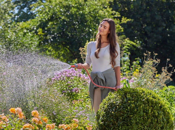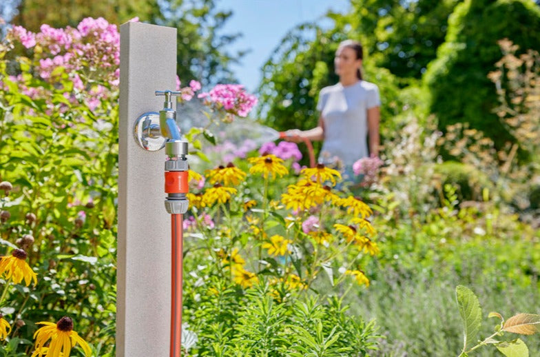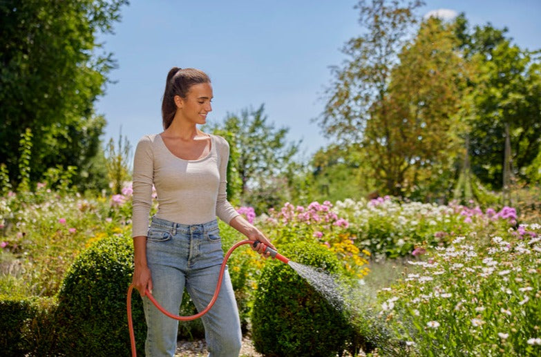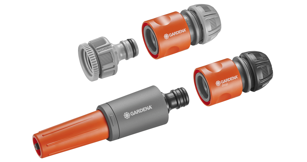 The GARDENA Basic Starter Set provides you with the necessary parts for irrigation and cleaning tasks in your house and garden. The ready-to-use set includes a Tap Connector with an adapter suitable for water taps with 21 mm (G 1/2") and 26.5 mm (G 3/4") threads, a Basic Hose Connector, a Basic Water Stop as well as a Basic Nozzle. With its fully adjustable spray pattern, ranging from fine mist to hard jet, the nozzle is the ideal fit for various watering and cleaning tasks, such as cleaning patios or garden tools. The Water Stop makes sure that the water stops automatically when you remove the attachment. It only starts again when a new attachment is connected. Thanks to the Anti-Splash Tap Connector, you can work splash-free at the tap. The hose fittings with special shaped clamp nuts provide a secure grip to the hose. With the distinct colour scheme, you can easily differentiate between the applications for the hose beginning in grey and the hose end, indicated in black. The set fits to 1/2" to 5/8" (13–15 mm) hoses. The GARDENA Basic Starter Set is a quality product made in Germany and is covered with five years of warranty by GARDENA. Das Original GARDENA System.