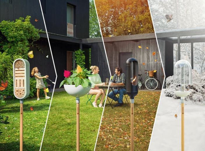 The GARDENA ClickUp! InsectHotel is not only of great use for insects such as wild bees, ladybugs and butterflies, but also a stylish and modern eye-catcher in your garden! Many species of insects have increasing problems in their natural habitats to nest, hibernate or feed. With the nesting aid from the GARDENA ClickUp! all-season lifestyle system you are contributing to the preservation of the indigenous diversity of species. But not only the insects feel the benefits from the Insect Hotel: the residents of your hotel help to pollinate the plants in your garden and some even serve as biological pest controllers. Whether butterflies, ladybugs or the particularly endangered wild bees - the Insect Hotel is developed according to the latest knowledge about the nesting habits of the creatures. It offers the different inhabitants differently designed rooms and chambers. To ensure that the hotel receives many visitors, it is best to install it between late February and April at any place in your garden. For the insects it is very important that the hotel stays in its place all year round. Once the insects have settled down, they will always return to this place. The insect hotel can of course be beautifully integrated with an additional ClickUp! Handle with further products. Thanks to the protective roof and the painted frame, the house can be used all year round. So the cute little creepy crawlies find a safe, dry and comfortable home all year round. The hotel for insects is easily attached to the stand handle made of high-quality larch wood with the practical One-Click connector. Once the two ClickUp! elements are connected, the connection is stable and wobble-free. This means that residents cannot be disturbed and there is no risk of damage to the nest. By raising the pole, the house is clearly visible to the insects and easy to reach. Thanks to the simple, stylish design, the Insect Hotel harmonises perfectly with its surroundings and is an attractive eye-catcher in your garden. The FSC® 100%-certified wood comes exclusively from well-managed forestry. GARDENA offers a five-year warranty on this quality product. The all-season lifestyle system for a garden that gives you butterflies.