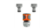 The Connector Set from GARDENA offers you versatile application possibilities in the garden or home. The complete set includes a hose connector and two tap connectors. All elements can be attached in just a few steps. You screw the tap connector onto a water tap. Then you can connect the hose connector to a garden hose. Thanks to the easy-grip handling, the hose connector and the tap connectors ensure a firm grip even with wet hands. The components of the set are part of the Original GARDENA System. This means you can attach any GARDENA connecting device to the hose. The individual components are frost-proof and UV-stable. This ensures long-lasting and reliable use. The Connector Set is a quality product, made in Germany with a five-year GARDENA manufacturer's warranty. Das Original GARDENA System.