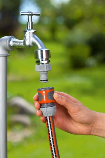 The Hose Connector by GARDENA is a useful adapter for a quick and easy-to-use connection at the beginning of the hose. The elastic ring, which you will find at the end of the hose connector, serves as protection from damage. When attaching the connector to the garden hose, the Power Grip will always be a great help. The specially shaped union nut ensures a high hose pressure. The soft plastic grooved grip recesses ensure a firm hold even with wet hands. Releasing the connection with a just simple pull is very easy.