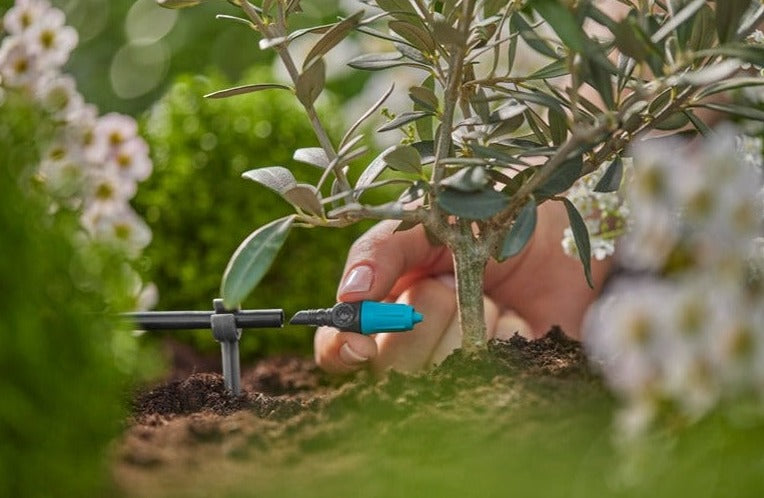 Use the Adjustable Endline Drip Head 0–15 l/h from GARDENA to selectively irrigate single potted plants, herbs or rows of plants in the Micro-Drip-System. You can use the practical Endline Drip Head at the end of the 4.6 mm Supply Pipe or twist it into the 13 mm Connecting Pipe after you have pierced the pipe with the help of the Assembly Tool. Regulate the water output of the drip head between 0 and 15 litres per hour. This way you can adapt to the different water demands of your plants in the garden, on the terrace or on the balcony. Potted trees with high water needs benefit particularly from the Endline Drip Head. Especially sensitive plants profit from this. Installation is convenient and easy thanks to the clever Easy & Flexible connection technology. Twist the MDS-component in, expand it flexibly or easily detach it from a Supply Pipe or Connecting Pipe. Micro-Drip-System. Caring for your plants and every precious drop. Easy, accurate, water and time-saving irrigation.