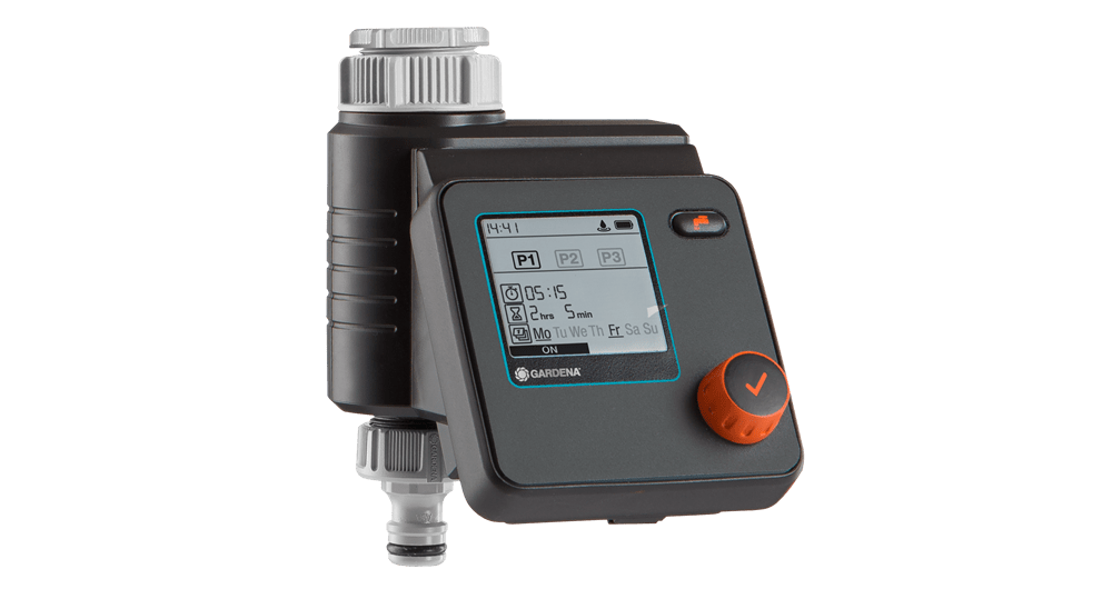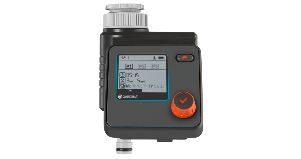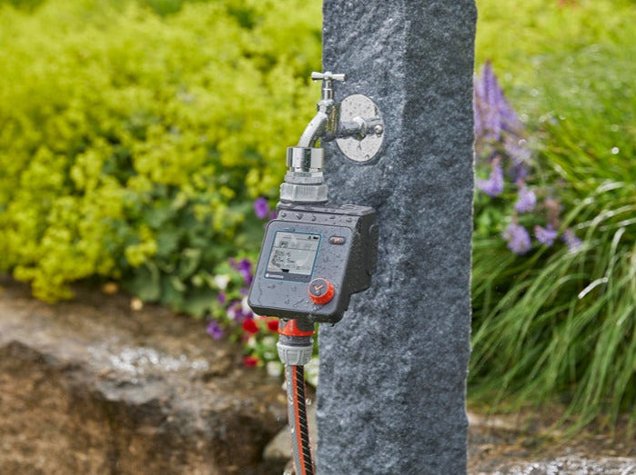 The GARDENA Water Control Select takes care of watering your plants fully automatically. Automatic watering is a great help for garden or balcony maintenance, especially if you are away a lot or want to make your day more flexible. The Water Control Select is connected directly to the water tap and then your GARDENA hose is also attached, which leads to the garden areas needing water. You can use it, for example, to connect a sprinkler, a Micro-Drip drip irrigation or an underground sprinkler system. It's possible to set up to three different watering schedules on the detachable control panel. Just programme the start time, watering duration and weekdays for each programme using the large, intuitive setting button. Each programme can be set for a watering duration from 1 minute to 7 hours and 59 minutes. The three programmes are visible on the LCD display. Various useful functions of Water Control Select make it even easier for you, for example, a screen lock prevents you from accidentally changing a setting. If you only need a bucket of water, you can get water directly from Water Control Select thanks to the Water Now function. The Safe-Stop technology ensures that the next watering session is not started if the battery level is too low. This way the water flow never runs uncontrolled. In addition, a Soil Moisture Sensor can be connected to Water Control Select - this is practical if you want to water the garden as efficiently as possible. If the Soil Moisture Sensor indicates that the soil is still damp, Water Control Select skips the next watering cycle. This ensures that watering only takes place when it is necessary. Sometimes it makes sense to prepare the soil for the actual irrigation with a shorter pre-irrigation. This is exactly what the GARDENA Water Control Select with its various programmes is ideally suited for. It reliably takes care of the garden watering. Water Controls. The full portfolio with innovative features for automatic and water-saving garden irrigation.