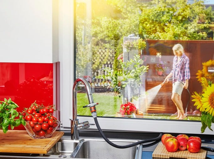 The Tap Connector for Indoor Taps by GARDENA means the hassle of carrying watering cans for irrigation is a thing of the past. Attach the hose adapter to a water tap, for example in the kitchen or bathroom. Then you can connect a garden hose to directly reach your flowers, plants or a paddling pool on the balcony, terrace or veranda. Installation is quick and easy. Apart from the included spanner, you don't need any other tools. After you have attached the thread adapter to a tap, you put the Tap Connector on it. Push in the orange slider to lock it and connect the hose, to open it push in the grey slider. The original GARDENA system not only provides you with a stable and watertight connection, it is also possible to attach any connecting device to the hose. The adapter is compatible with all standard water taps with M 24 x 1 internal or M 22 x 1 external thread (not suitable for pressureless or low-pressure water heaters). The water connection connector is frost-proof and UV-stable. The Tap Connector for Indoor Taps is a quality Made-in-Germany product with a five-year manufacturer's warranty. Das original GARDENA system.