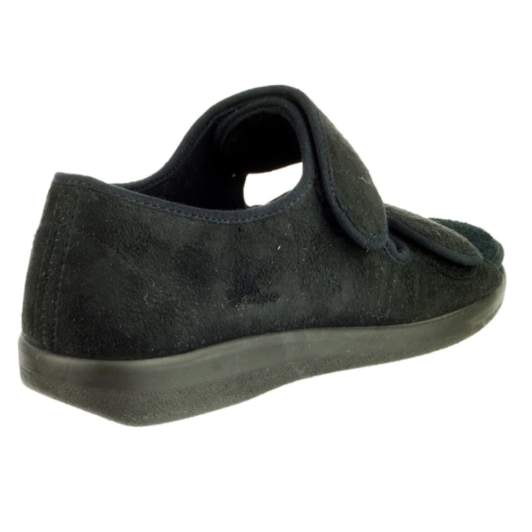 Extra wide Velcro slippers fitting up to a 3E wide fit. Wide and roomy foot area ideal for swollen feet. Extra long Velcro straps and simple wide opening. The insole can be removed if required. Machine washable.