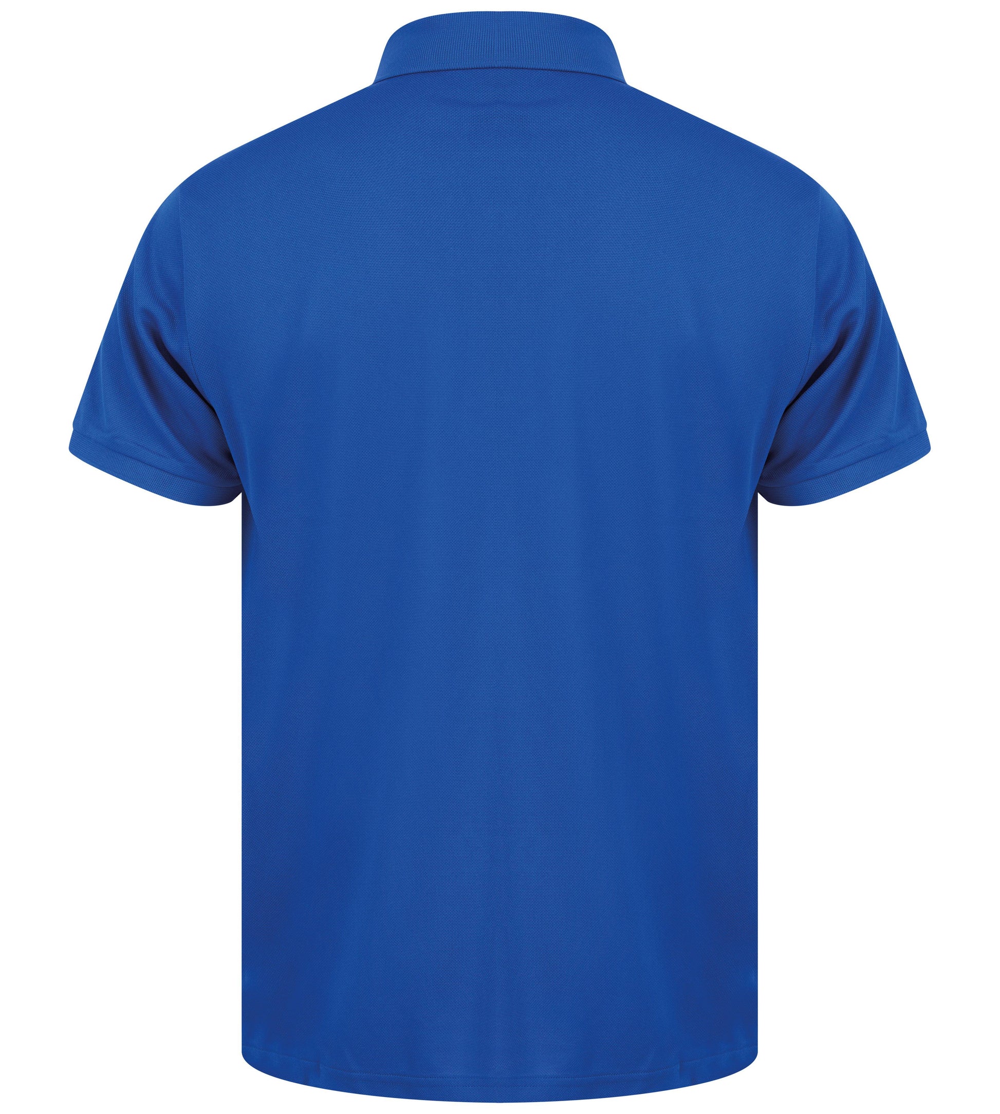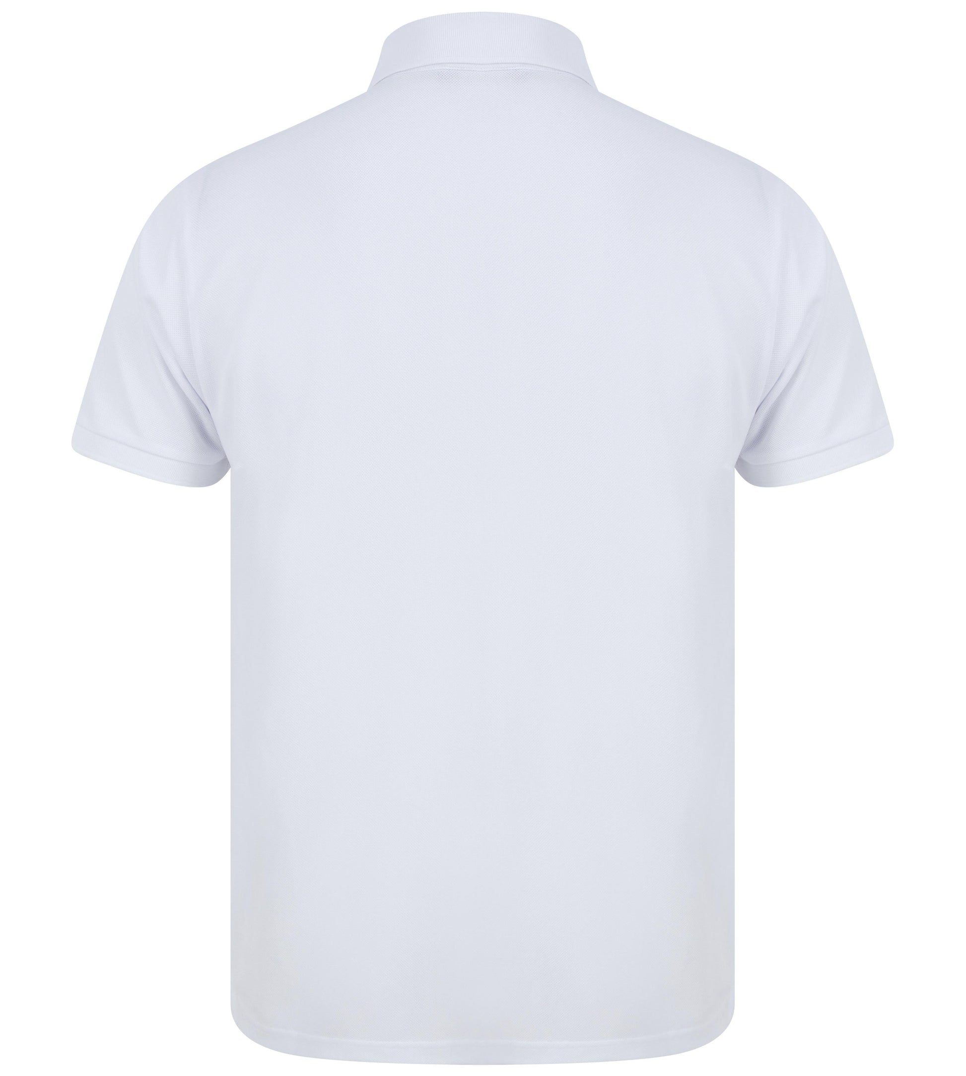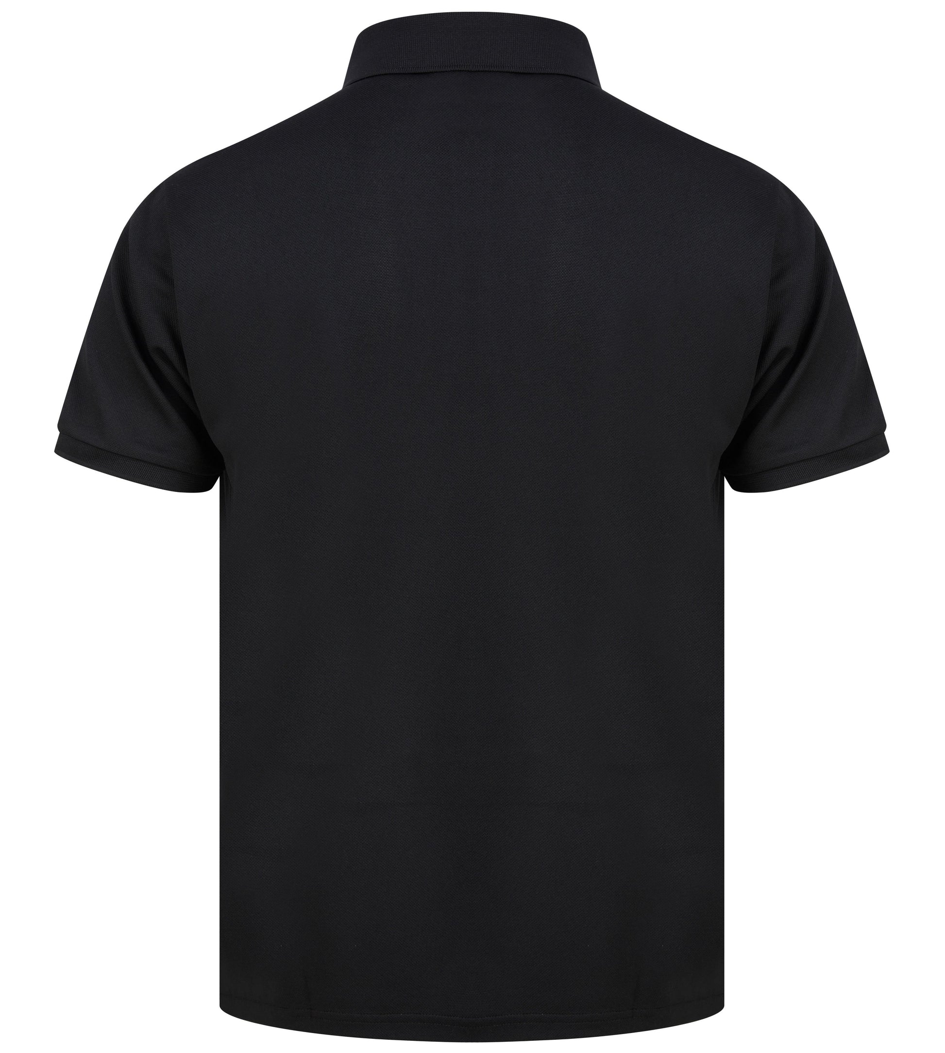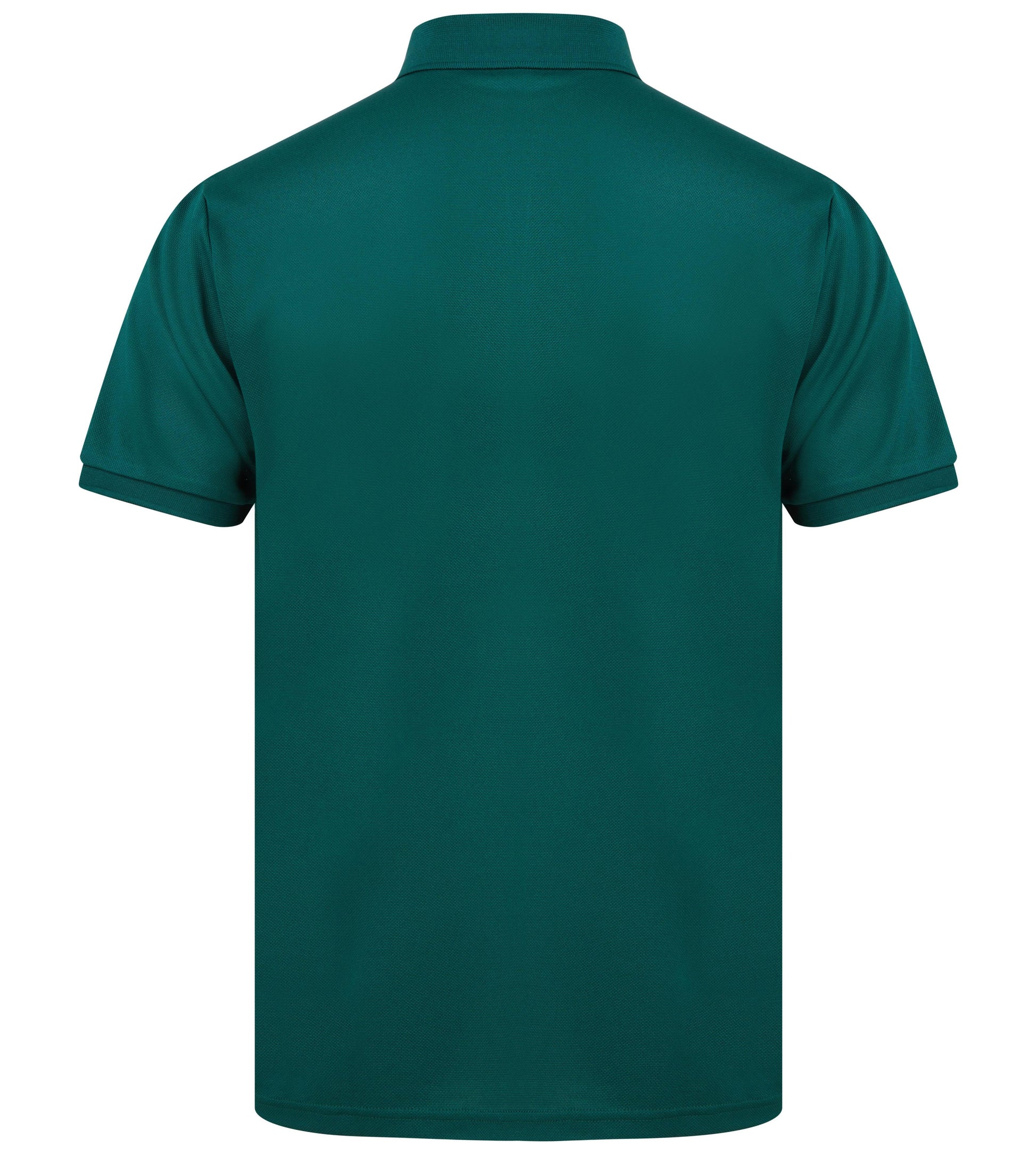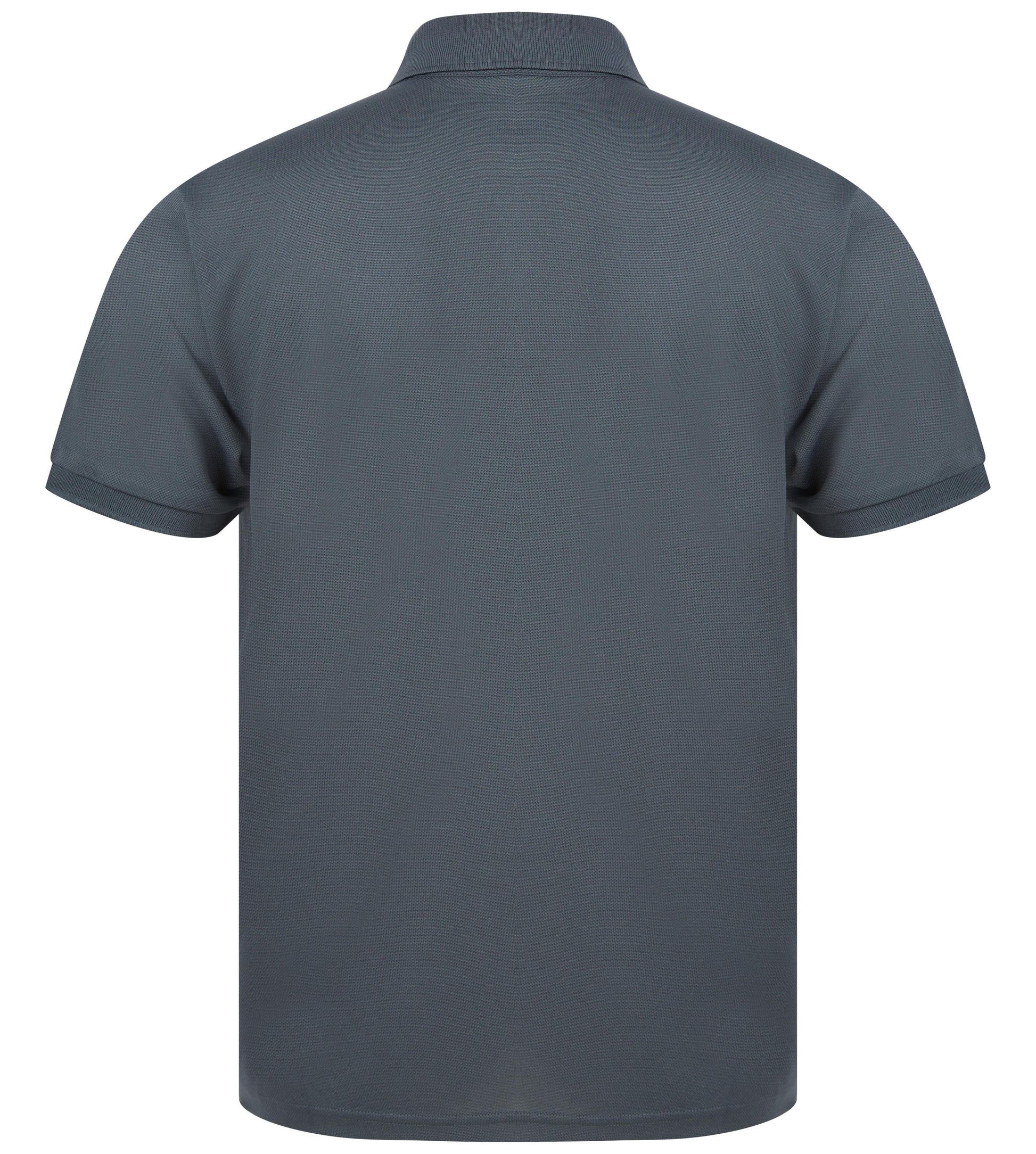 Polo shirt made from recycled polyester yarn with wicking properties. Regular fit with 3 button placket. Henbury stand-up collar. 1x1 ribbed collar and cuffs. Dyed to match buttons. . BSCI certified. Oeko-Tex certified.