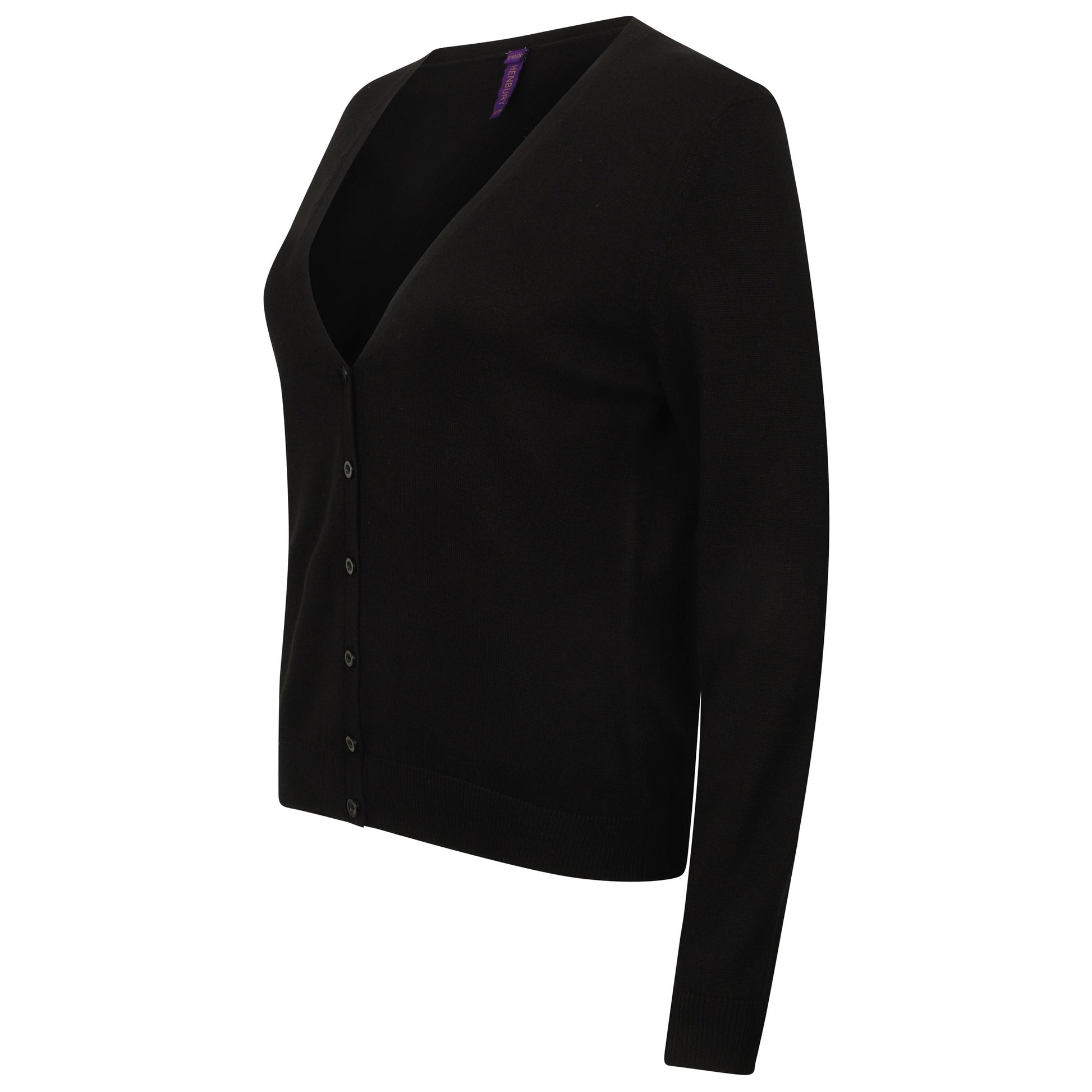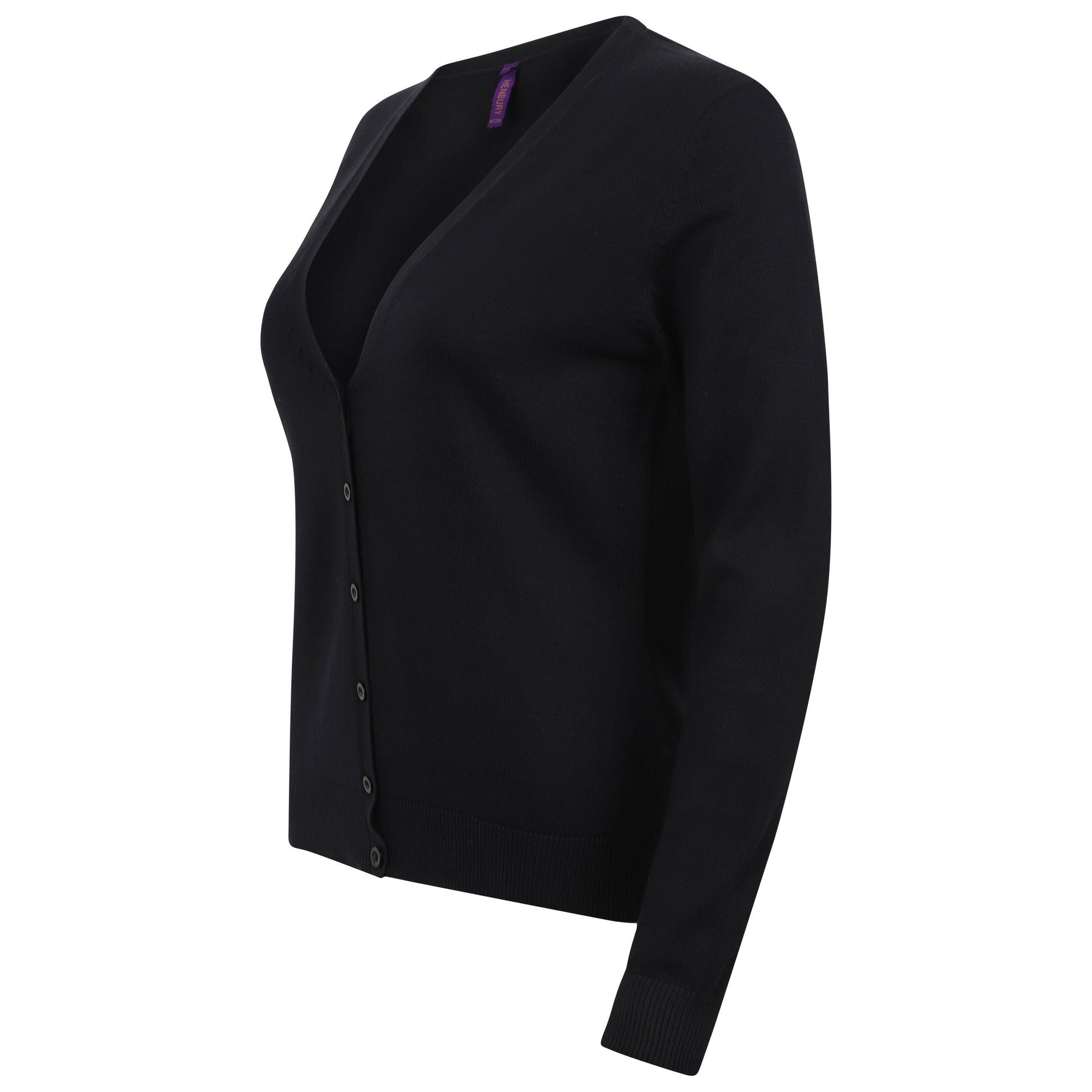 Fine knit 12 gauge short length cardigan. Semi-fashioned sleeve and neck detail. Self-coloured pearlised buttons. Set in sleeves. 1x1 neck rib, hem and cuffs. Co-ordinates with Men’s HB720, HB724, HB725 and Women's HB721. Henbury cut-out brand label. SEDEX certified. Oeko-Tex certified. BSCI certified.