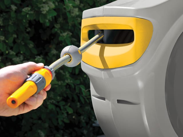 The Hozelock AutoReel Retract Hose Systems have a rewind mechanism, combined with an internal spring, which means that the hose is rewound onto the drum with the minimum of effort. The user only has to walk the hose back to the reel and the ratchet mechanism means that the hose only rewinds when you want it to.