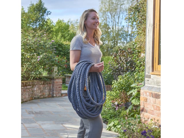 The Hozelock Tuffhoze combines traditional PVC with textile for maximum flexibility and strength. It is up to 50% lighter compared to traditional hoses, making it easier to manoeuvre.