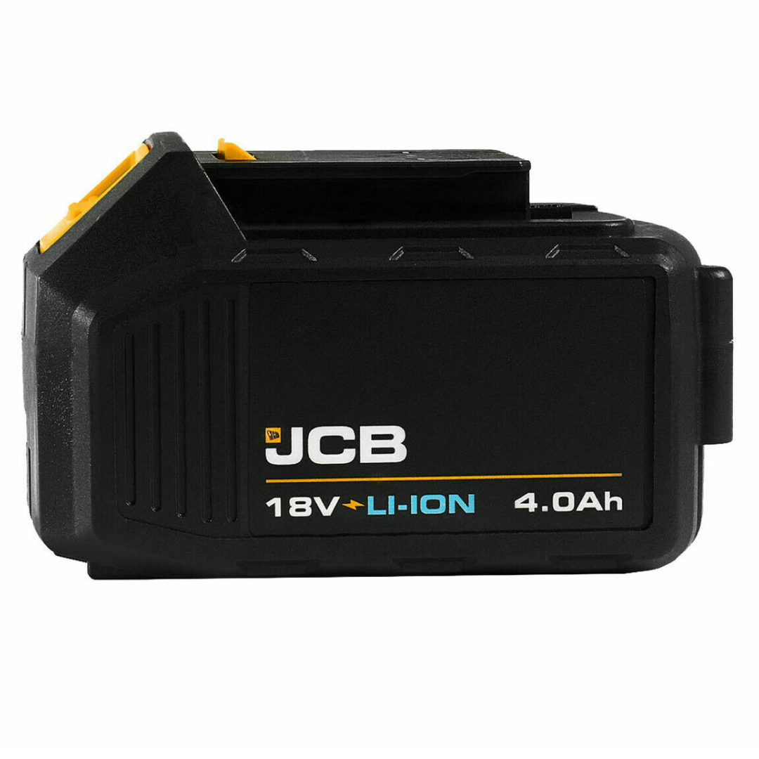 The JCB 18V 4.0Ah battery is a lithium technology, easily charged accessory. The battery combined with a power tool would be used by a mixture of trade professionals and home DIY users. The JCB 18V power tools are fuelled by a single battery platform. The batteries have fast charging times, to ensure maximum efficiency. Its charged faster than it’s run time. They are easy to use batteries, with slide button, clicking in and out of the tool within seconds for users ease and comfort.