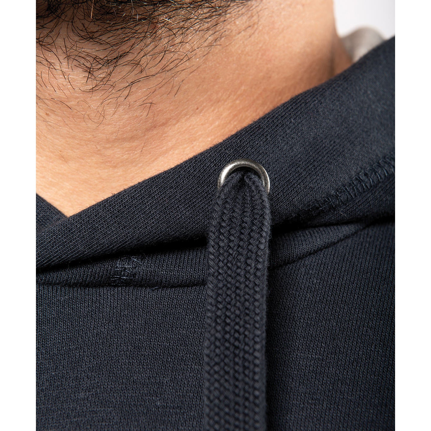 80% combed cotton/20% LSF polyester. Low shrinkage brushed fleece. Silicone wash. Contrast neck tape. Heather Grey inner hood for all colours, except for Oxford Grey body where inner hood is Dark Grey. Kangaroo pocket. Ribbed cuffs and waistband. Certified STANDARD 100 by OEKO-TEX® N° CQ 1007/8, IFTH.