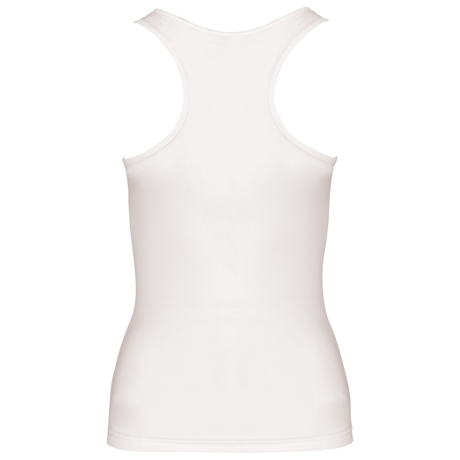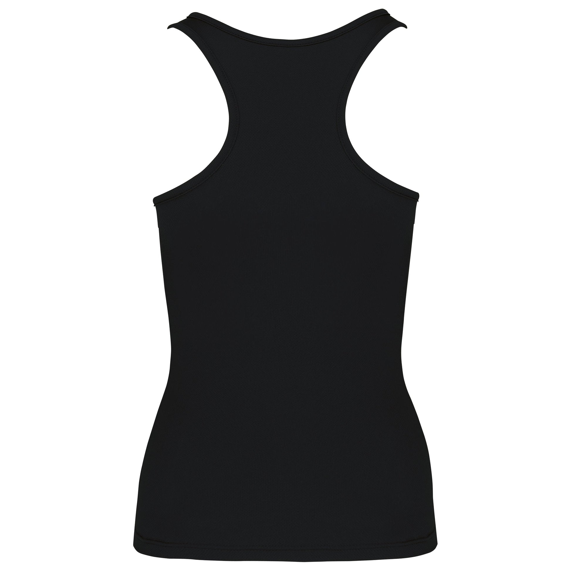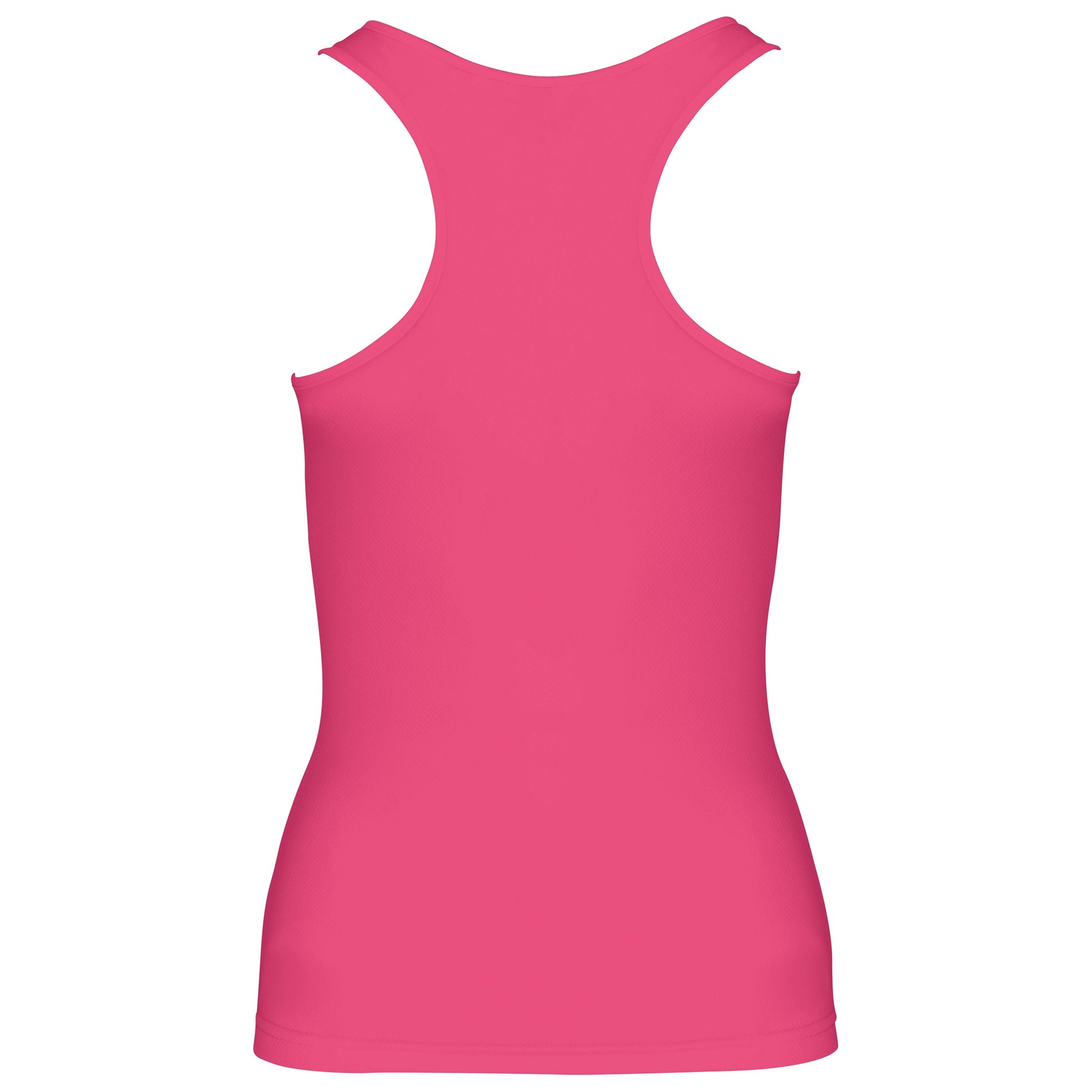 100% Polyester. Quick drying Lightweight fabric. Racer back style. Bound neck and armholes. Twin needle finishing. BSCI certified. Oeko-Tex certified.