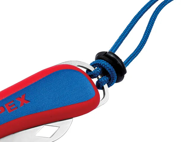 The Knipex Electrician's Folding Knife has a high-quality, extremely sharp, stainless steel blade and a handle made from robust, shock-resistant plastic. Its ergonomic handle provides a comfortable grip and easy guidance. It is easy to open thanks to the practical diamond shaped grip on the blade. There is a useful tether attachment at the end of the handle.