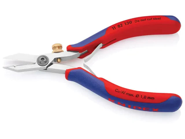 The Knipex Electronic Wire Stripping Shears are ideal for cutting and stripping solid, multicore and finely stranded conductors with conductor cross-section up to 0.75mm². They are made from oil-hardened tool steel with a pointed head for accurate cutting of fine wire in confined places. The knurled screw and lock nut provide easy adjustment for the required wire diameter. They are also fitted with an opening spring.
