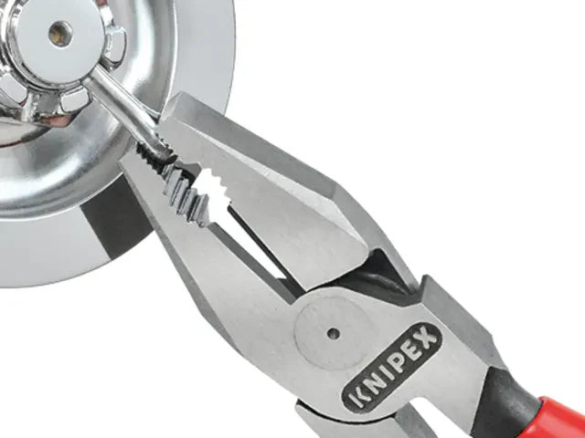 The Knipex 02 01 Series High Leverage Combination Pliers with dipped PVC handles. They offer a 35% saving in effort compared with conventional pliers due to improved lever action. Made from high-grade special tool steel, forged, multi stage oil-hardened.