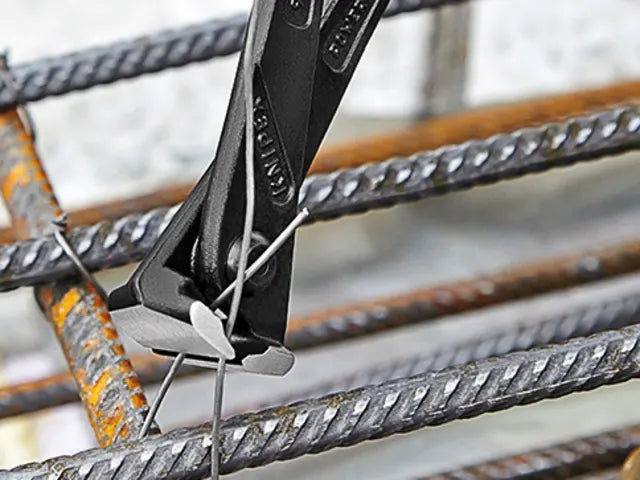 Made from special tool steel that has been oil-hardened and tempered with an extra slim form, making them ideal for tying submerged positioned steel rods. They provide a particularly high cutting capacity with minimum effort due to their optimum transmission ratio. High damping of the cutting stroke after cutting the binding wire reduces strain on tendons and muscles.