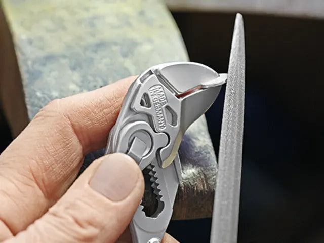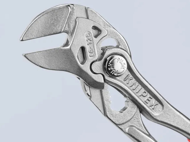 The Knipex 86 03 125 Mini Plier Wrench is ideal for precision mechanics, particularly suitable for working on small bolted connections. Thier mini size makes them very good in very confined areas. They are made from Chrome vanadium, forged, oil-hardened electric steel. Lever transmission is greater than 10 : 1 for strong gripping power.