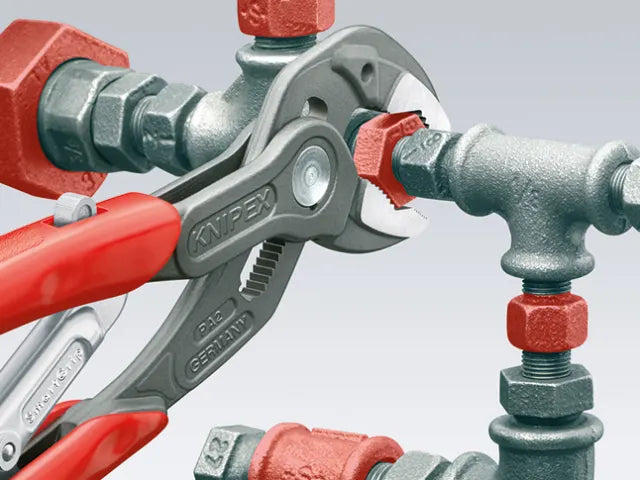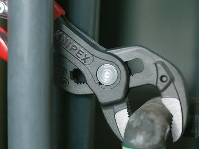 The Knipex KPX8501250 Water Pump pliers have automatic adjustment to the workpiece simply by squeeezing the handles for the perfect grip and fit. You can use these Knipex Water Pump pliers one handed. Manufactured from high quality chrome vanadium electric steel, making these pliers very strong and durable. Fitted with PVC dipped handles for a better grip and comfort.