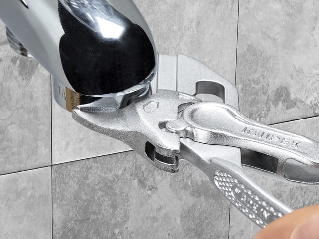 The Knipex 86 Series XS Pliers Wrench offer optimum accessibility, even in confined spaces thanks to their particularly compact design, and slim head. The smooth jaws allow for the gentle assembly of sensitive fittings, and parts with delicate surface finishes: can be used directly on chrome due to the smooth full-surface contact.