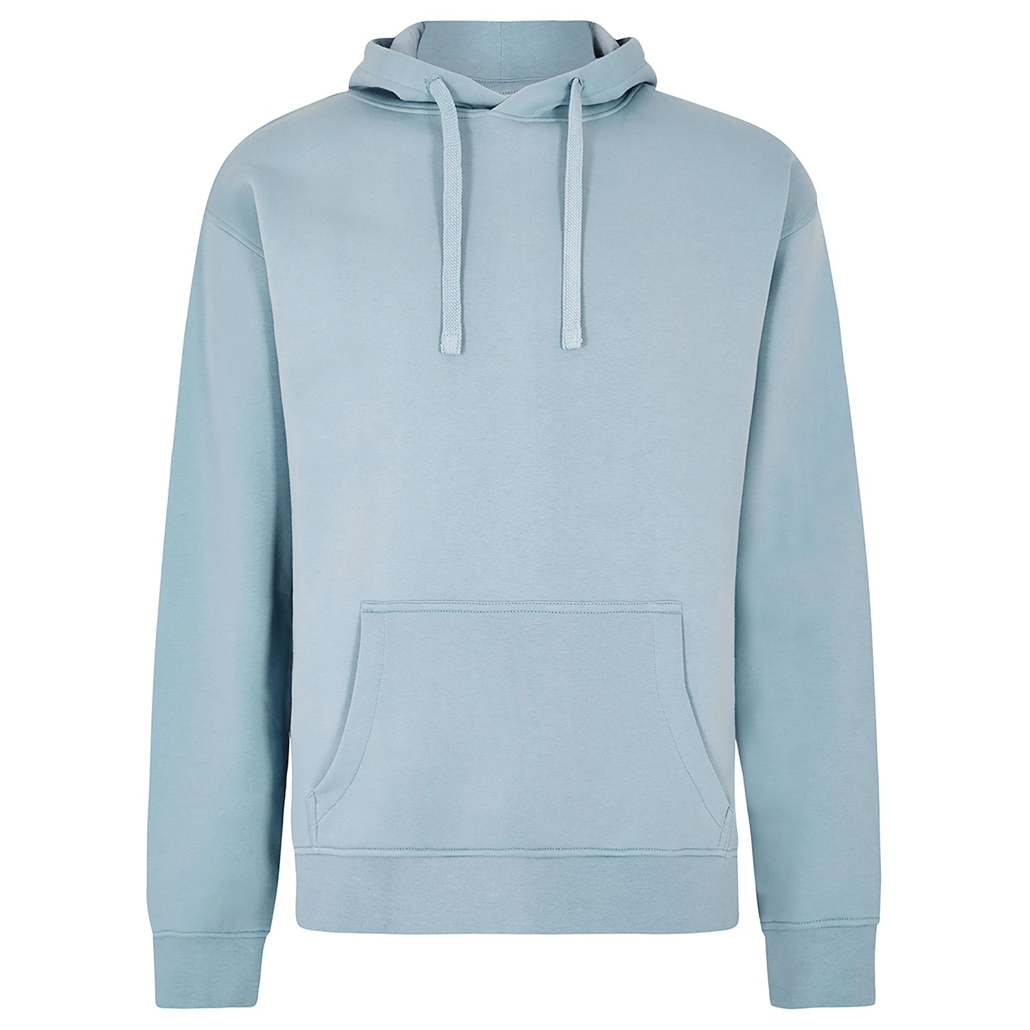 Over the head hoodie. Self-colour Jersey lined hood. Jersey binding to back neck. Taped shoulder. Self-fabric full needle rib double layered cuff and welt. Double stitched armhole. Flat lace drawcord running through hood. Central kangaroo pocket with double stitching for durability. Kustom Kit® tear-out label. SEDEX certified. Oeko-Tex certified.