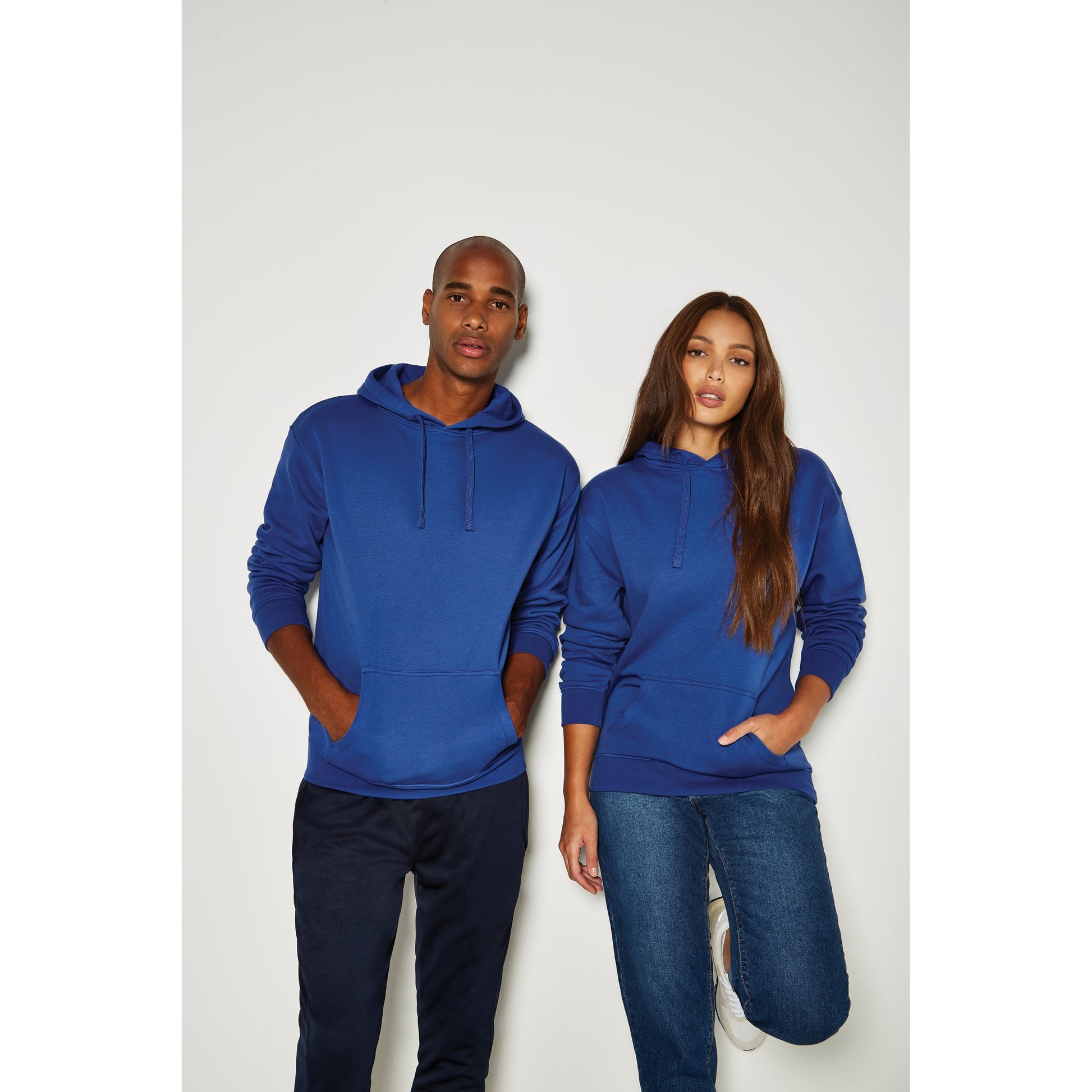 Over the head hoodie. Self-colour Jersey lined hood. Jersey binding to back neck. Taped shoulder. Self-fabric full needle rib double layered cuff and welt. Double stitched armhole. Flat lace drawcord running through hood. Central kangaroo pocket with double stitching for durability. Kustom Kit® tear-out label. SEDEX certified. Oeko-Tex certified.