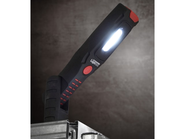 The Lighthouse Rechargeable Inspection Light features an SMD LED work light, providing a powerful 300 lumen output floodlight, along with a bright 100 lumen spotlight function. The inspection light features a powerful rechargeable 3.7V Li-ion 2200mAh battery that provides a run time of between 3 to 9 hours, depending on the function selected.