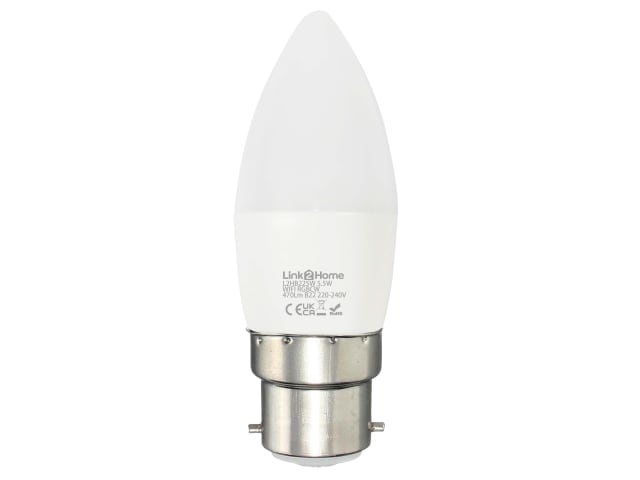 The Link2Home Wi-Fi LED Opal Candle Dimmable 5.5W bulb has a 470 lumen output, equivalent to a traditional 50W bulb.