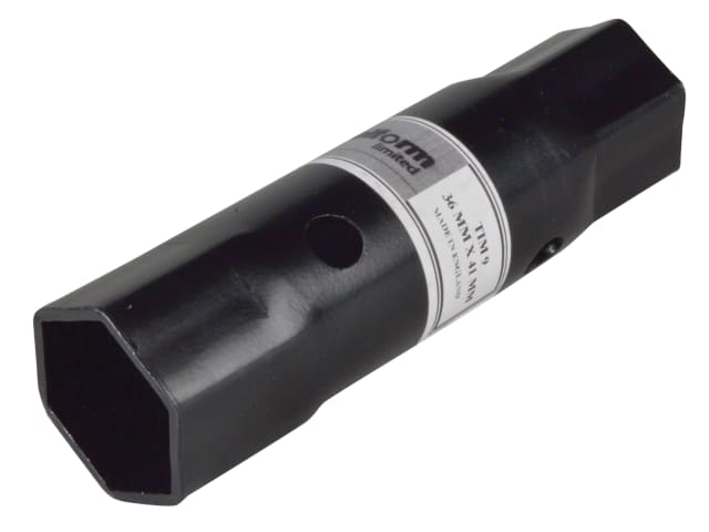 This tubular box spanner is made from bright plated steel and able to accommodate a tommy bar.