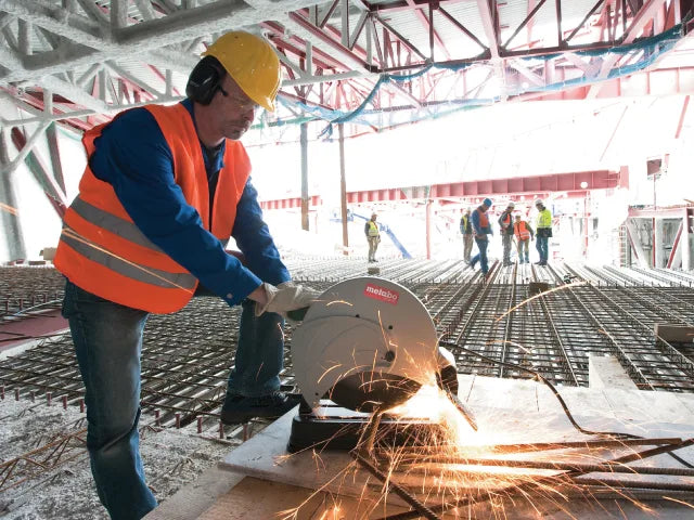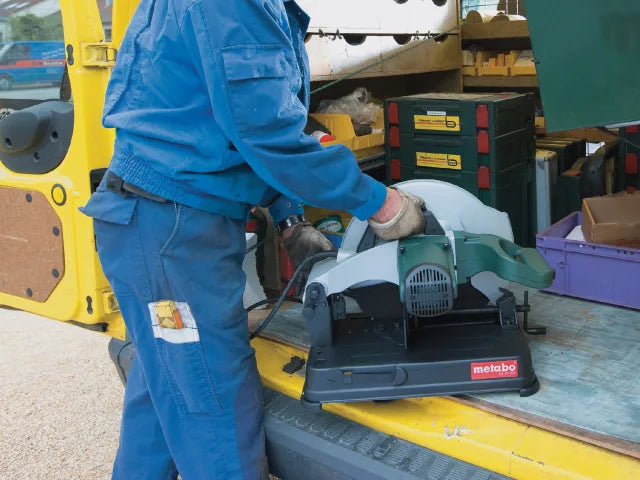 The Metabo 355mm CS23355 Metal Cut Off Saw 1600W 240 Volt Version offers powerful and fast cutting for profiles, pipes and rods made of steel, cast iron, aluminium and other non-ferrous metals. It has motor and gear with ball bearing and designed for high loads, spindle lock for easy disc change and quick clamping device with variable mitre conversion from -15° up to 45°.