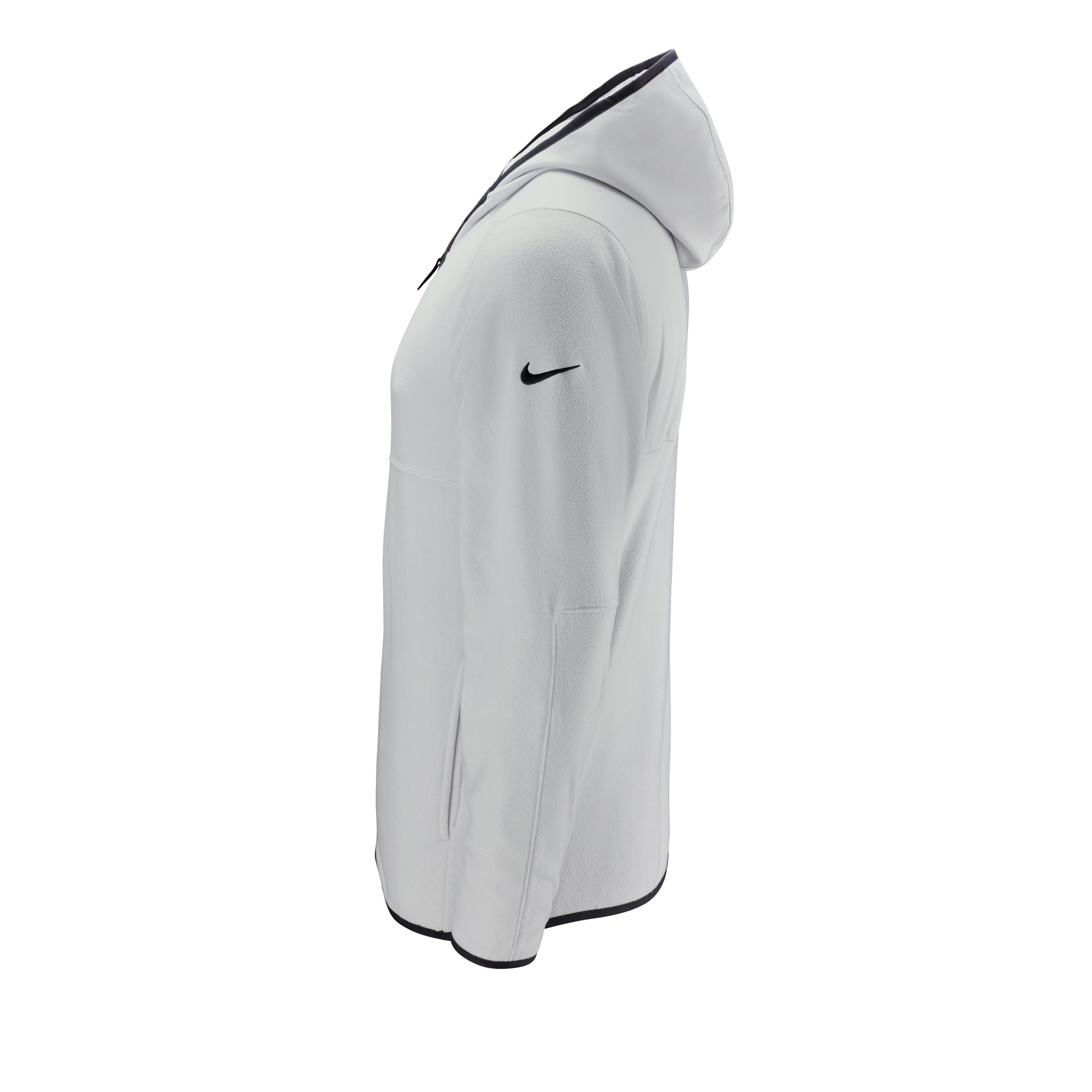 Soft fleece with Nike Therma-FIT technology helps manage your body’s natural heat to help keep you warm in cold-weather conditions. Woven overlays on the upper back, shoulders and collar stretch, so you can move freely. Contoured hood has a lower profile than a traditional hood, allowing you to see peripherally as you line up each shot.