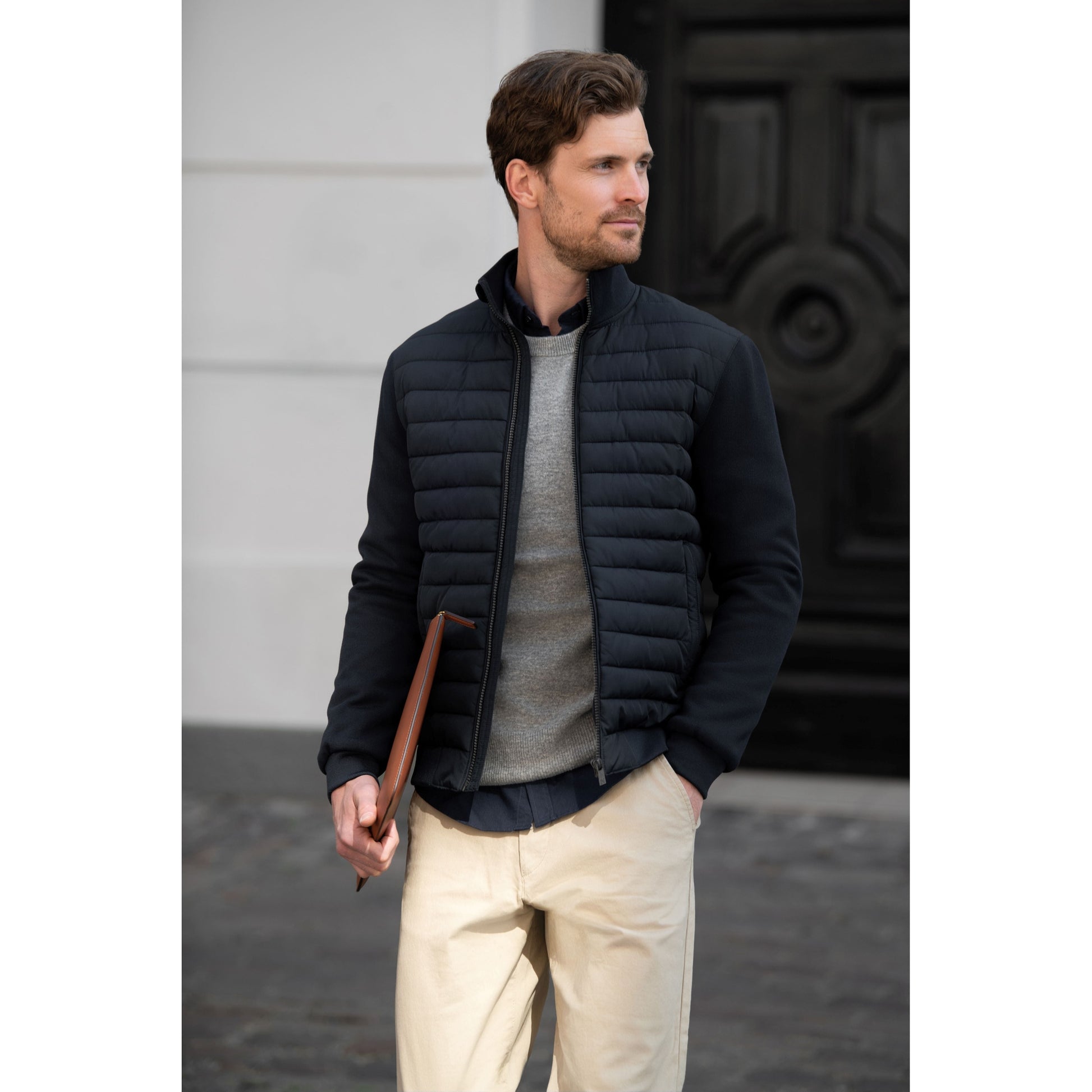 A premium design complemented by expertise in quality outerwear makes Crescent a versatile hybrid jacket, elegantly crafted for layering and transitional weather. With smoothly knitted sleeves bonded with fleece, stand-up collar and strategically-placed panels with padding in recycled polyester at the front body, this luxury hybrid jacket provides essential warmth where you need it most. Crescent is a versatile piece of outerwear that pairs nicely with both classic and more modern garments.