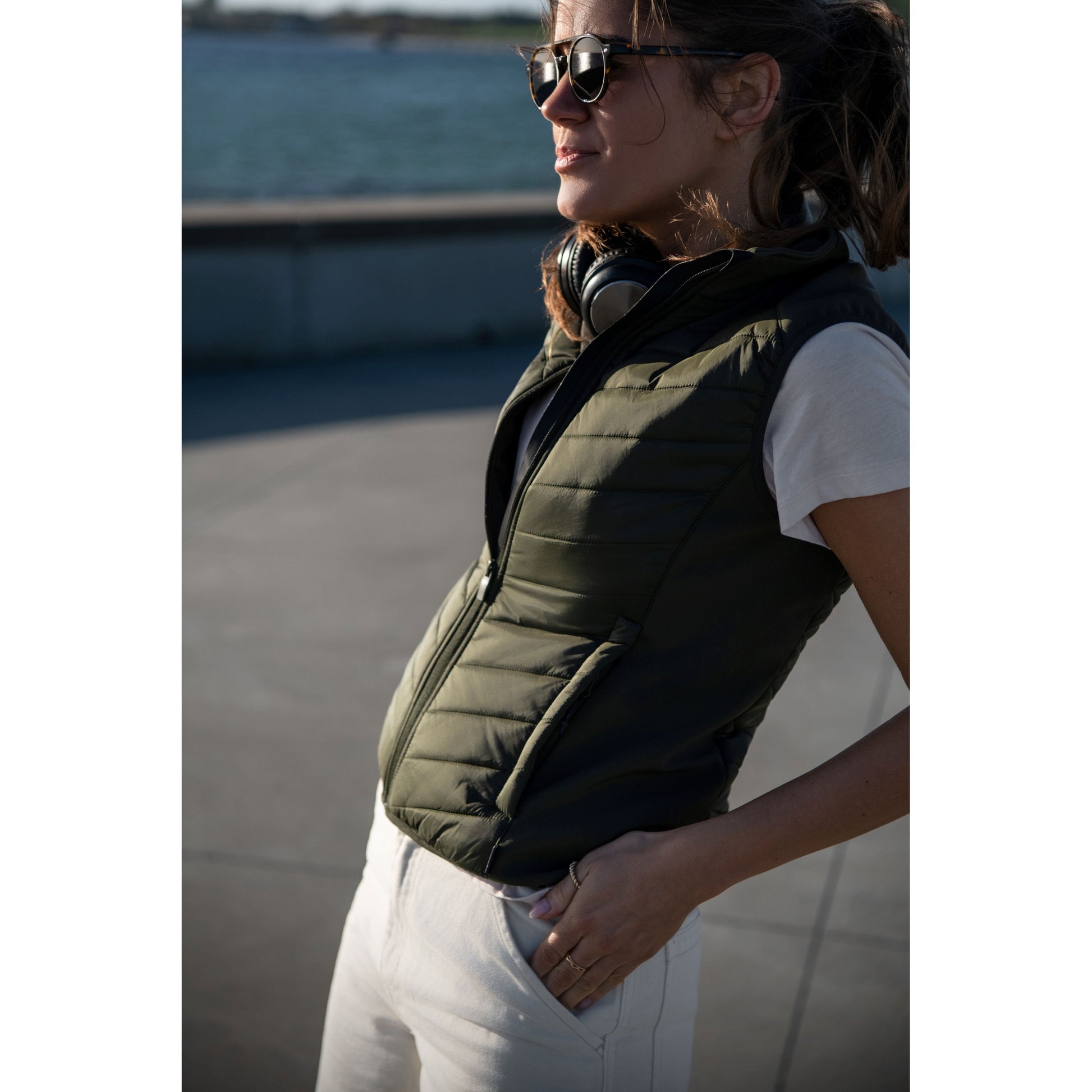 - Inside adjustable drawstring. Recycled fabric and Sorona® Aura quilted padding