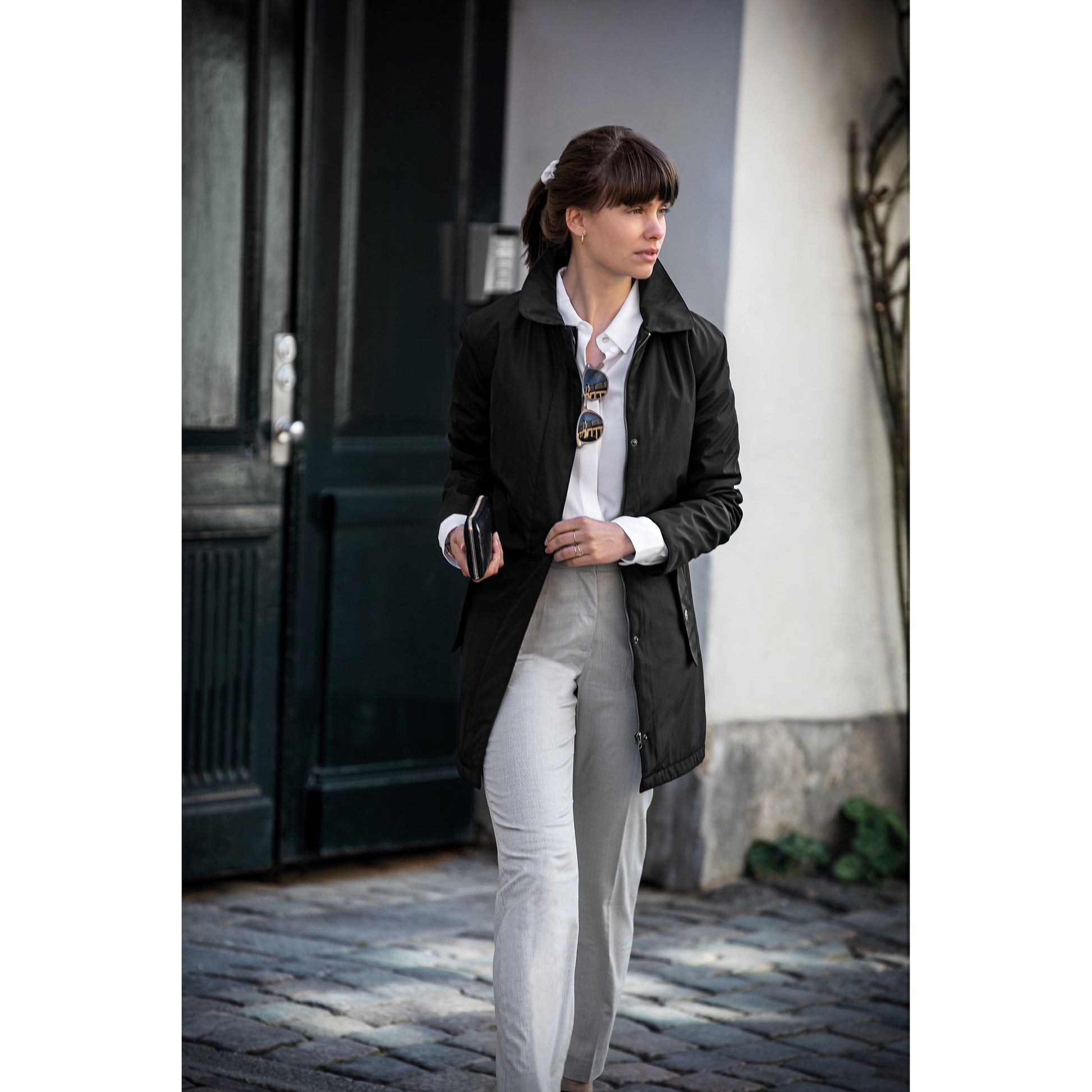 DETAILS: YKK main zip. Inner fabric vertical quilted to soft padding for insulation. Feminine ¾ length. Windproof. Water-repellent finish (Bionic Finish® ECO). SUSTAINABILITY: Reach. Global Compact. Amfori. Water-repellent - Bionic Finish® ECO
