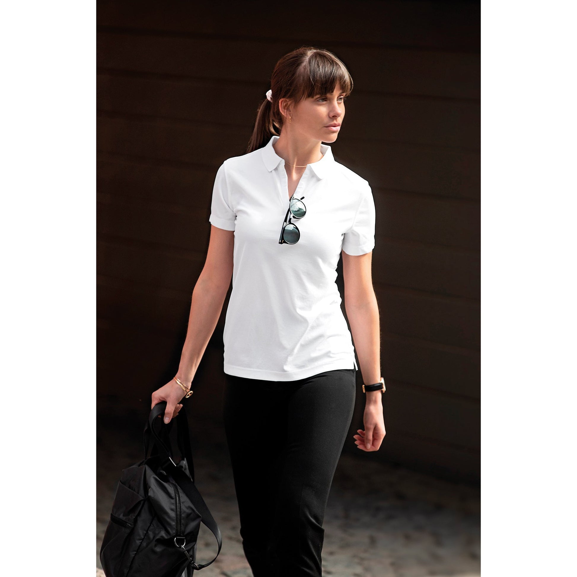 DETAILS: Fine gauged polyester piqué. Shirt collar stand. V-notch at collar. SUSTAINABILITY: Reach. Global Compact. Amfori. Accord. OEKO-TEX