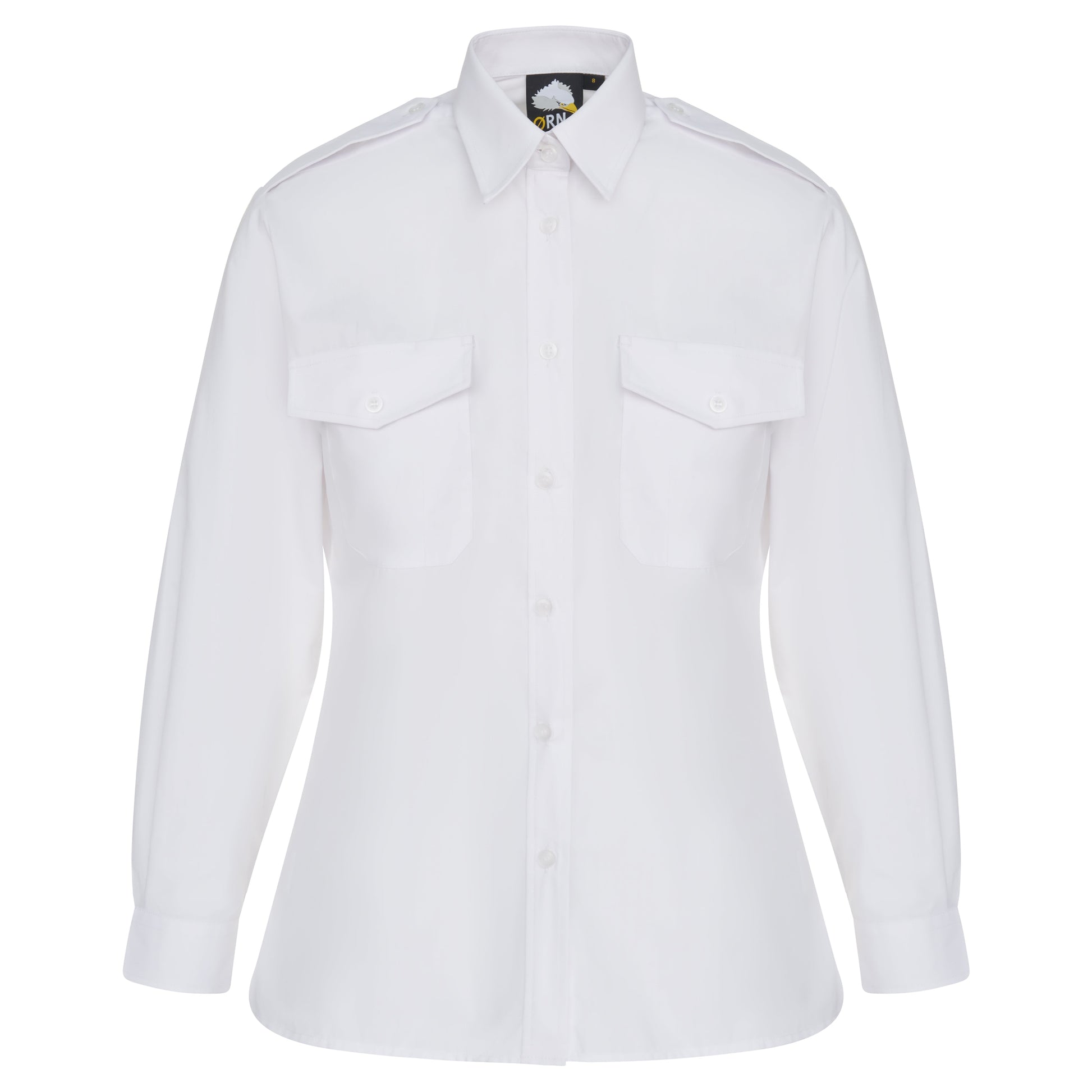 Pilot long-sleeved blouse, ideal for the work environment. Fitted.