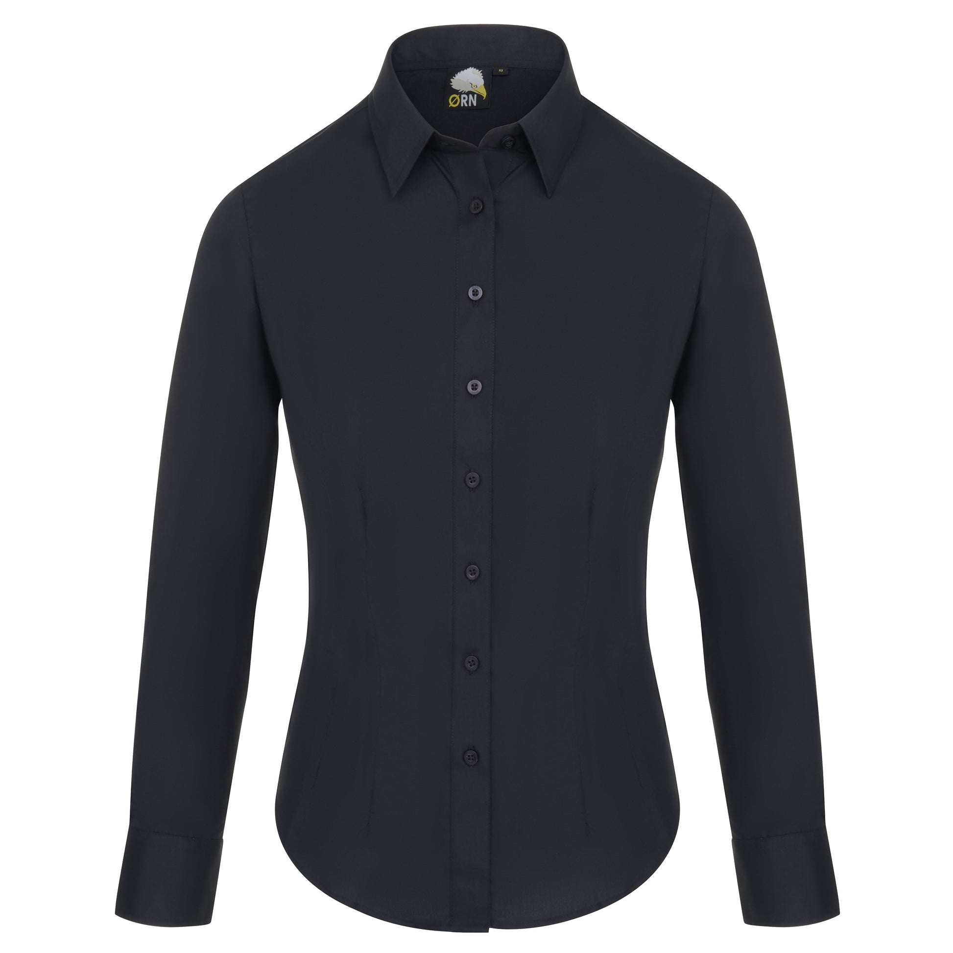 Polycotton long-sleeved blouse, ideal for the work environment. Fitted.