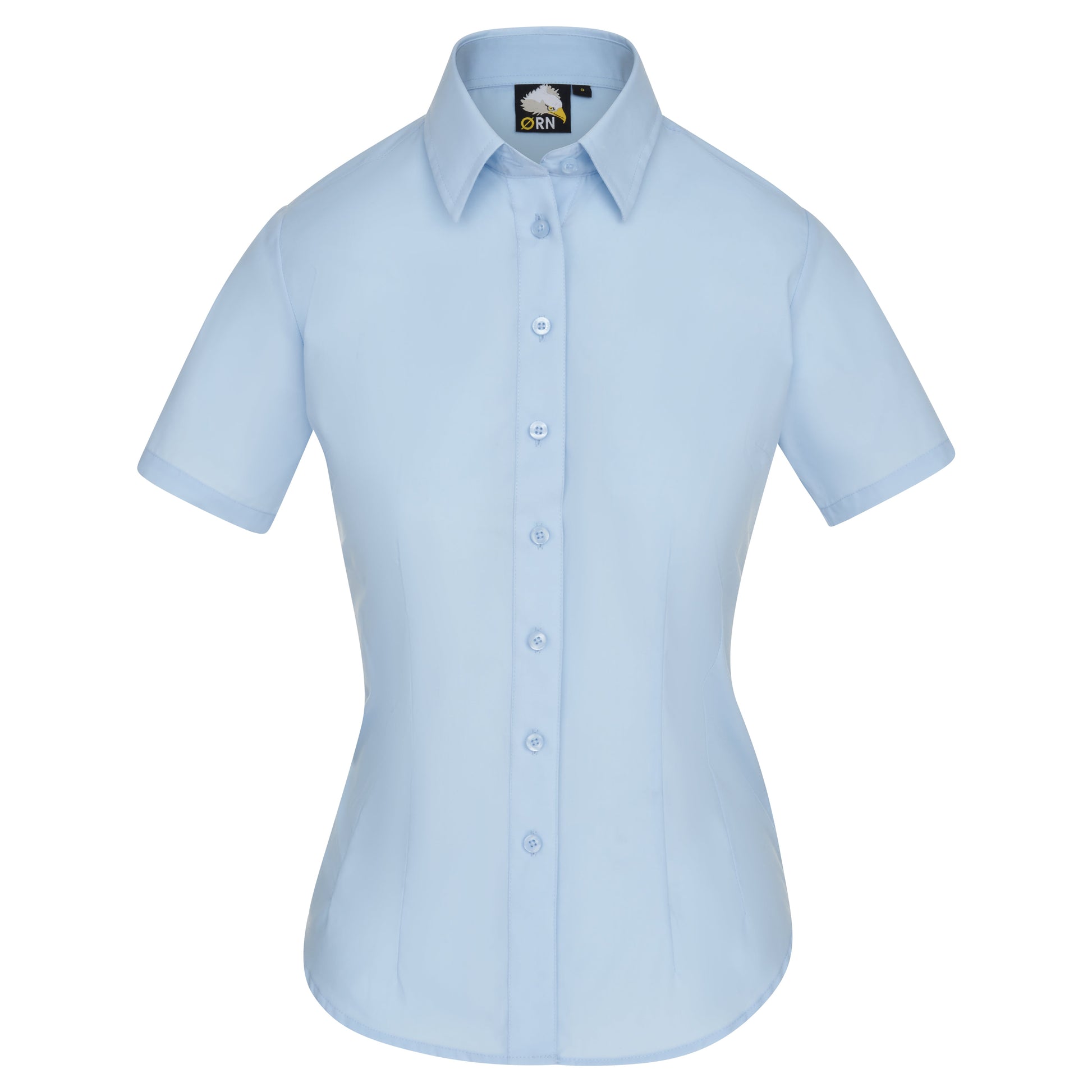 Polycotton short-sleeved blouse, ideal for the work environment. Fitted.