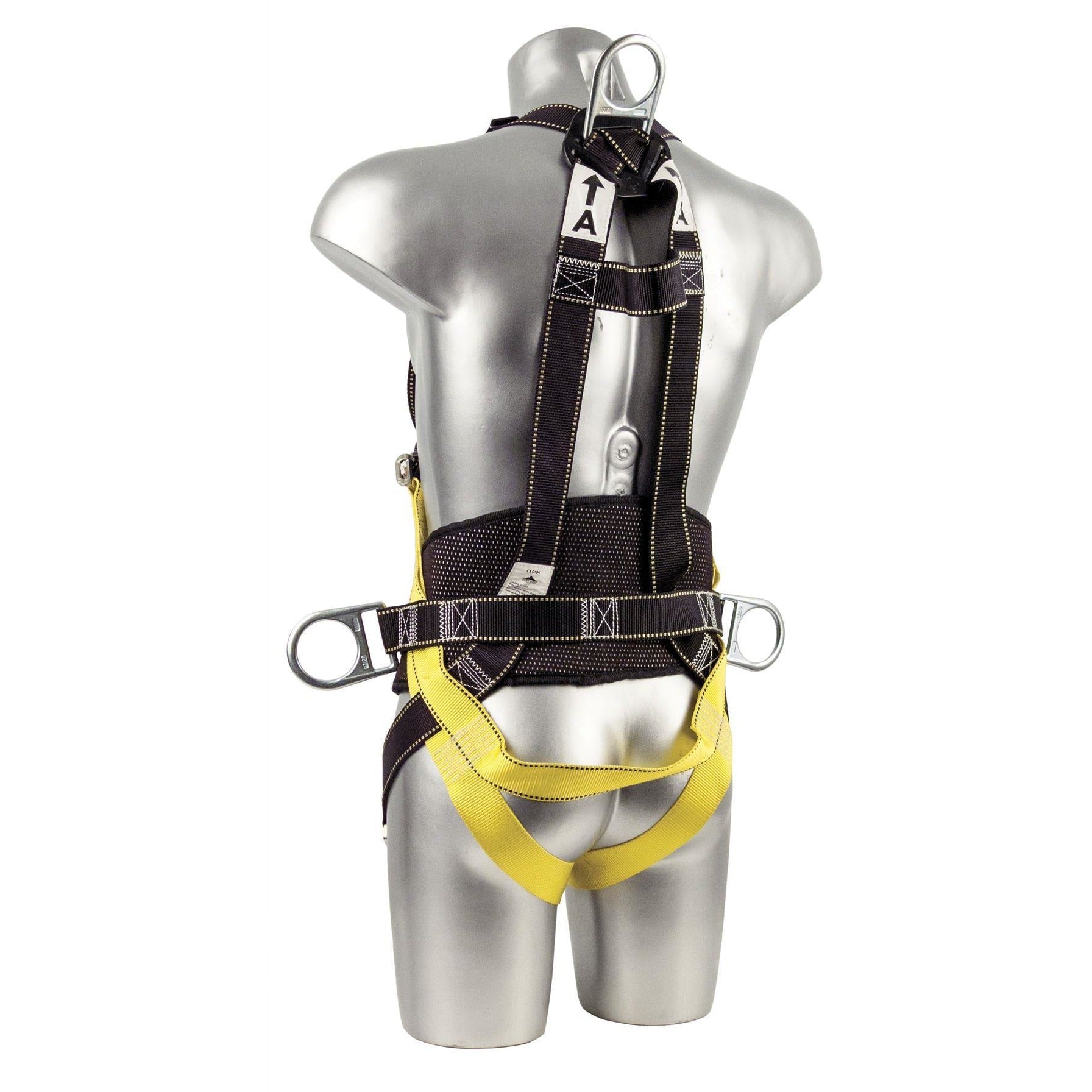 This full body harness, with a breathable contoured backpad, provides ultimate comfort and safety when working at height. Featuring an extended D-Ring shoulder strap arrangement for easy dorsal fittings and two side D-rings.