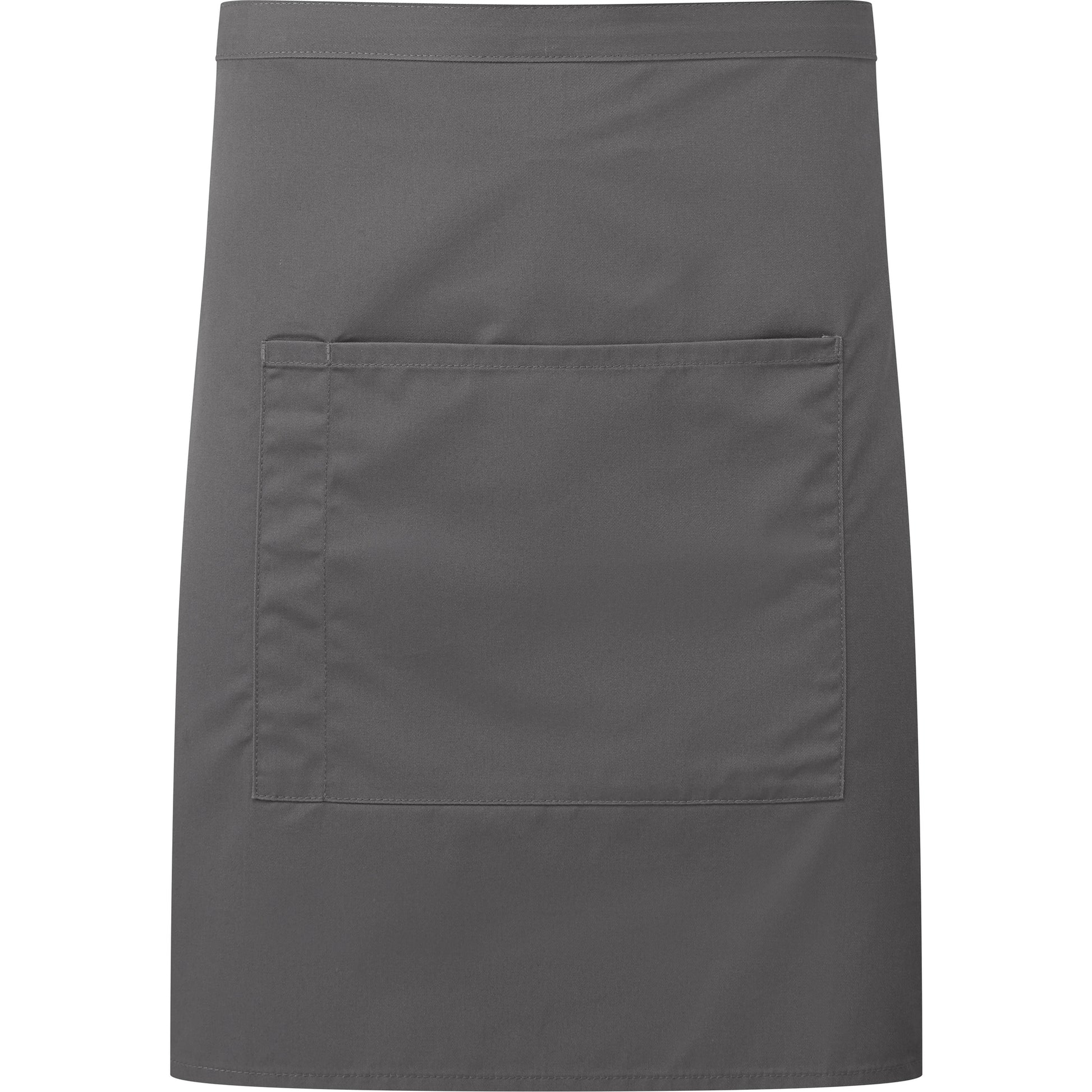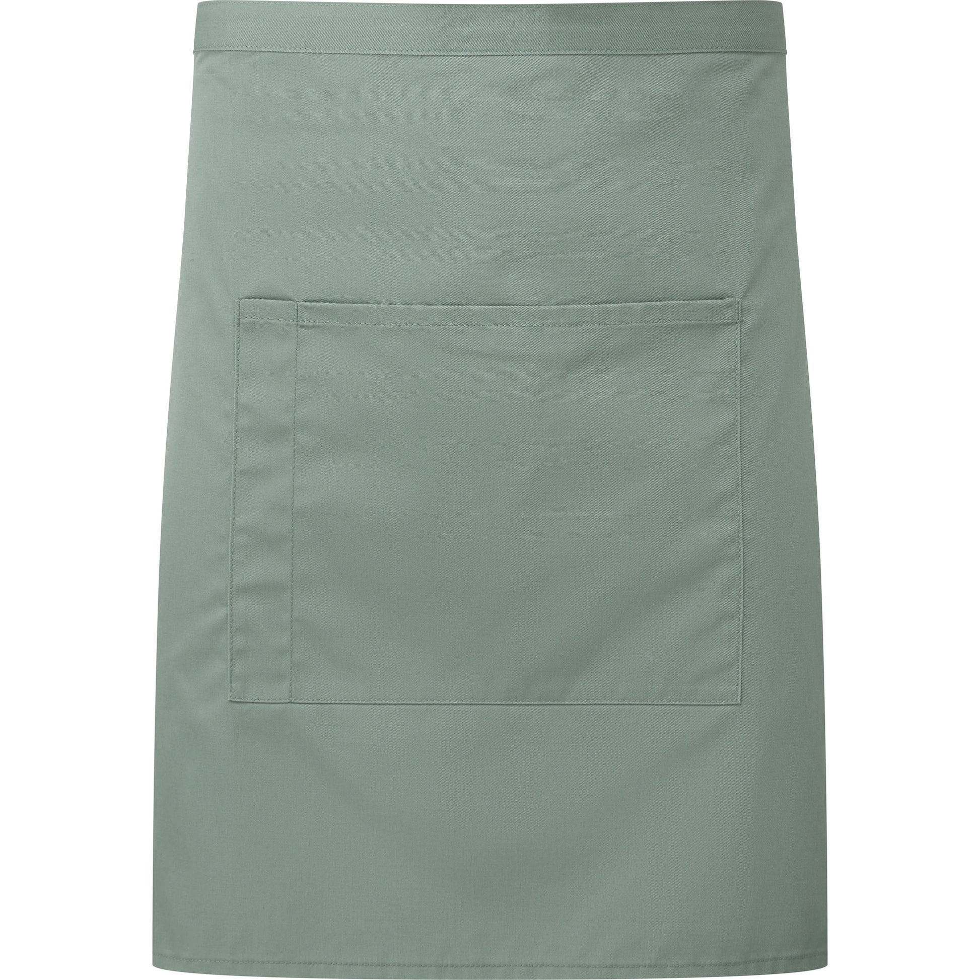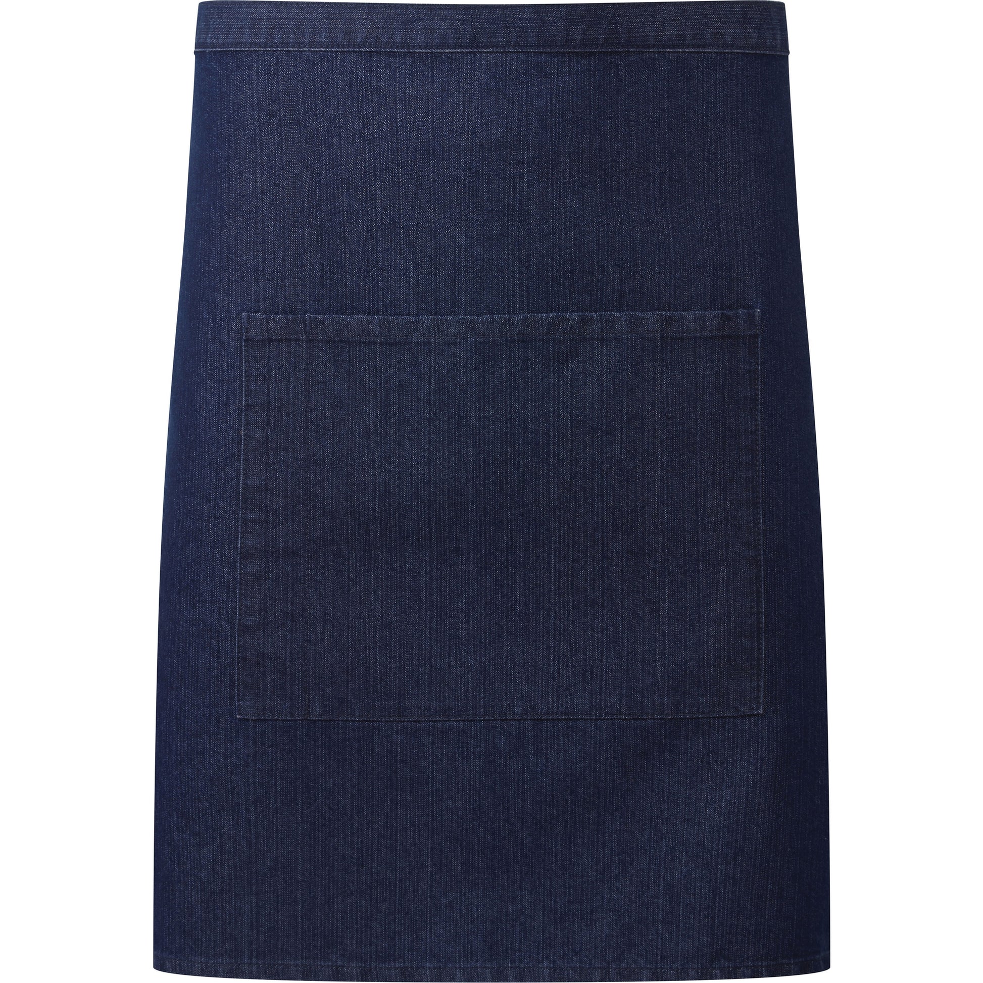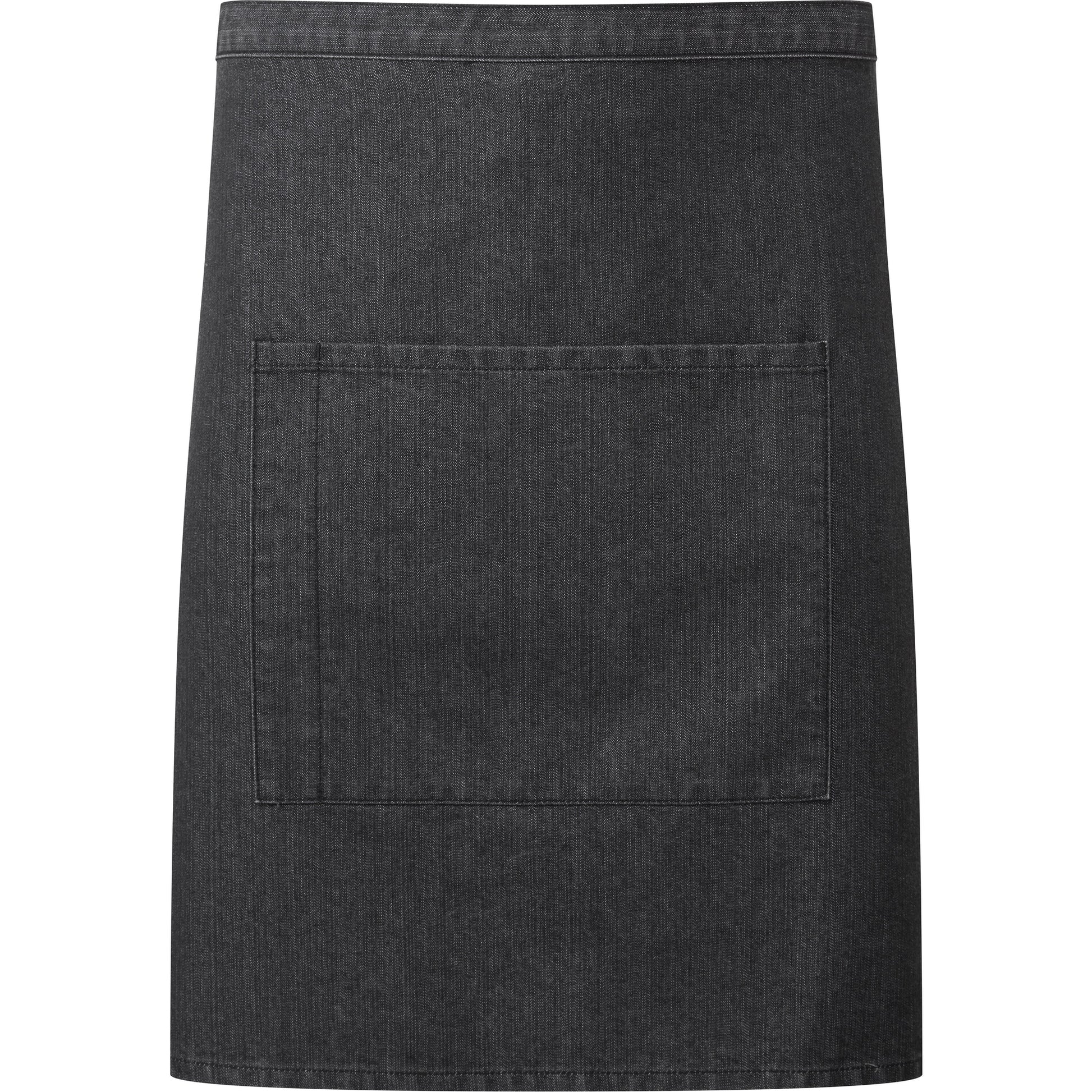 Mid-length waist apron. Tablet-friendly centre pocket with combined pen pocket. Self-fabric ties. Sedex and Global Recycled Standard certified.