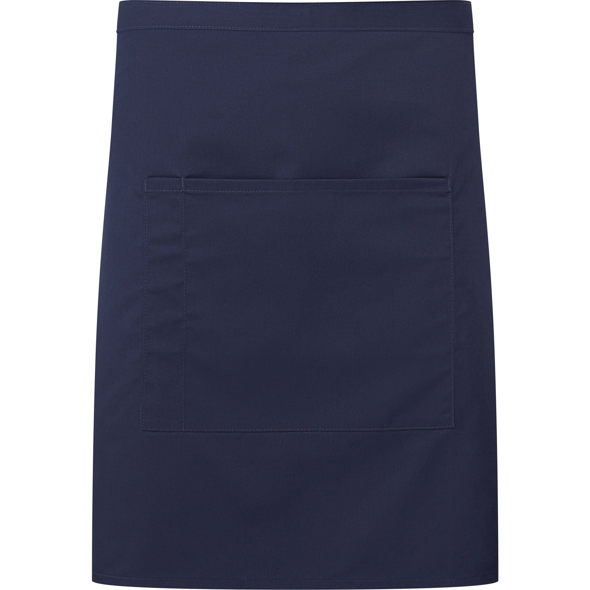 A popular apron for waitressing and bar staff. Self-fabric ties at the waist are long enough to be doubled round and knotted at the front for styling. Featuring a practical centre pocket with built-in pen pocket. Available in six of the best-selling colours.