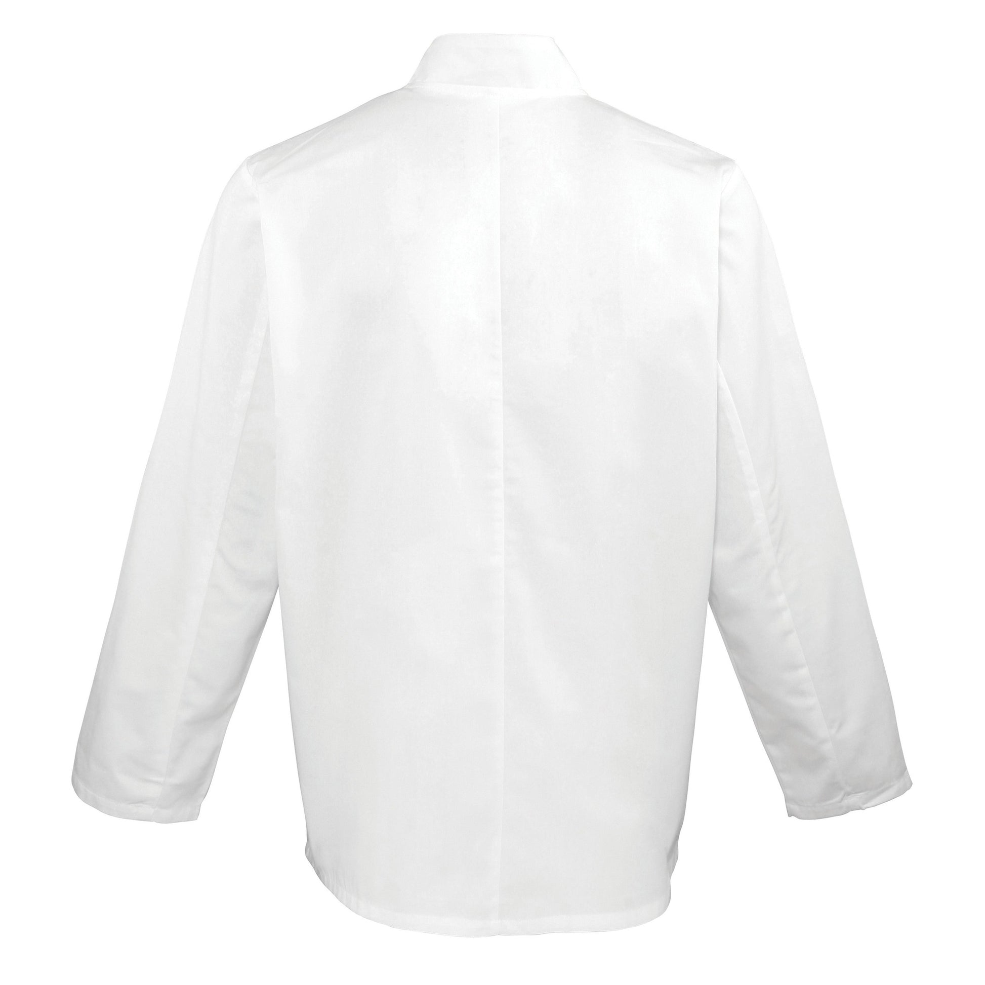 An easycare long sleeve chef's jacket with a ten-button wrap over style fastening. To withstand the demands of repeated washing, the buttons are long-life resin buttons. A smart jacket for chefs with a mandarin collar for a streamlined look. Available in black, white and steel across a wide range of sizes.