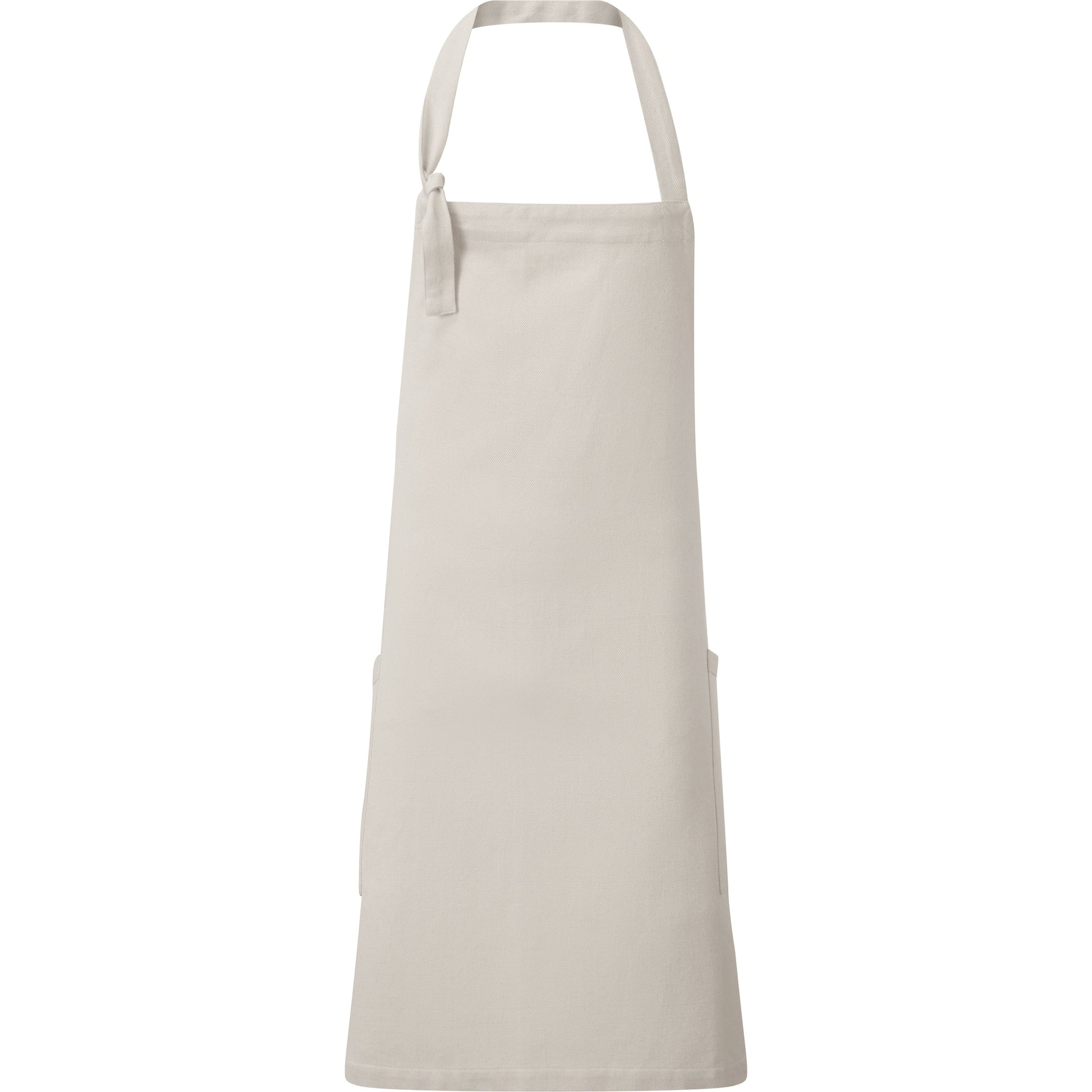 Recycled cotton from used denim. Recycled Polyester from post- consumer plastic. Eco-friendly uniform solution. Two slanted side pockets with contrast trim. Neckband with a knot for height adjustment. Contrast stitching. BSCI certified. SEDEX certified. WRAP certified.