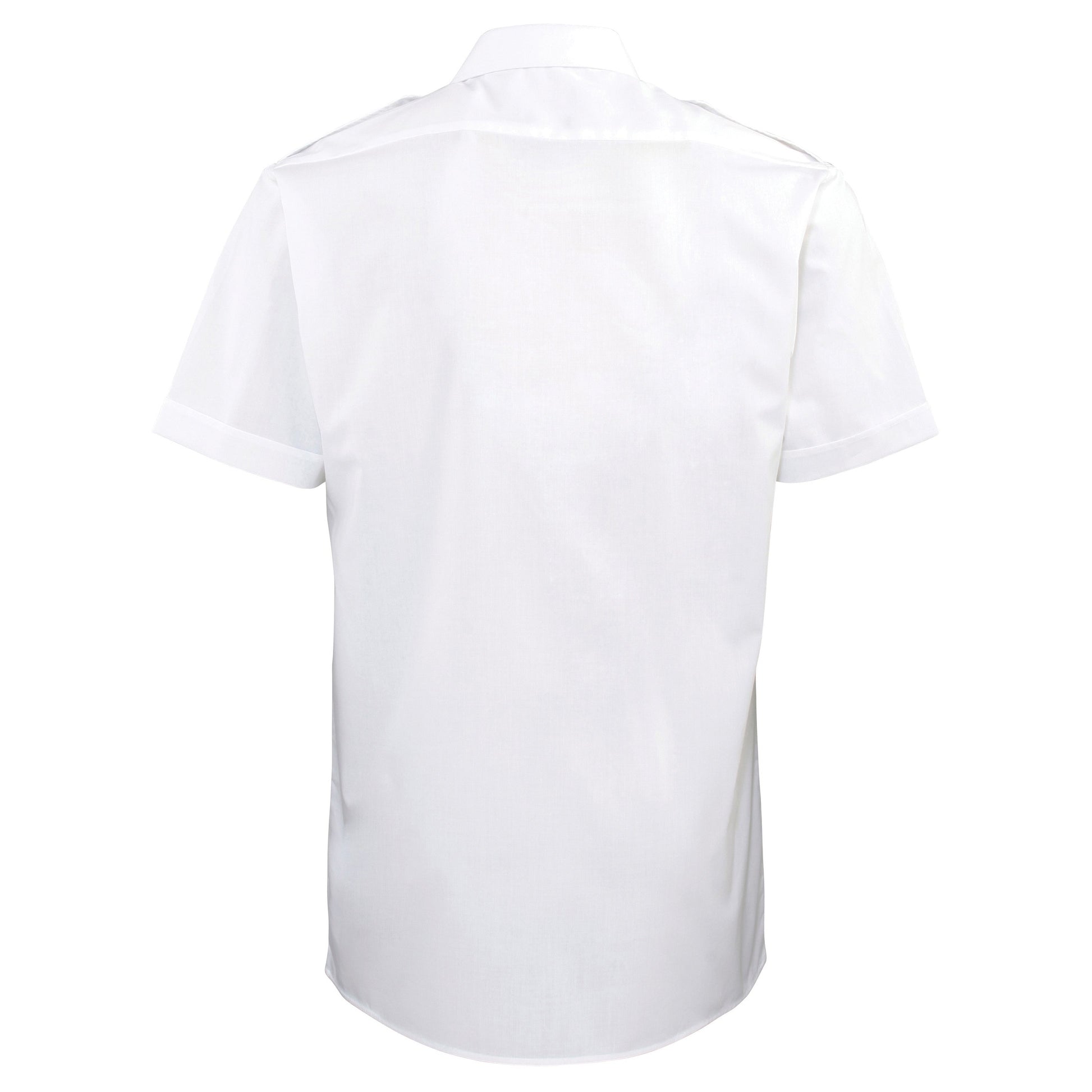 A men's short sleeved pilot/security shirt with a stiffened collar and tabs for epaulettes on shoulders for those who need a more authoritative approach to workwear. WRAP certified. BSCI certified. Reach certified. SEDEX certified.