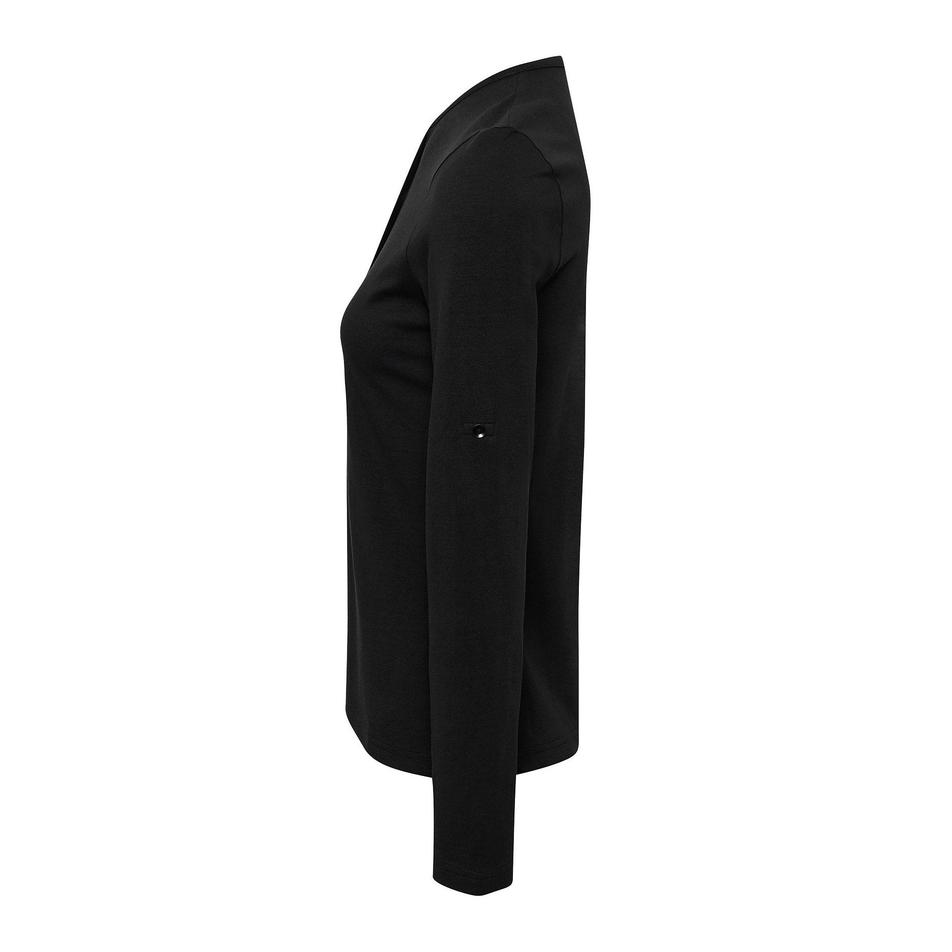 Take on a modern utilitarian trend with this women's roll sleeve tee. A simple but versatile style that can be worn as a long sleeve or rolled back and fastened in place on the upper arm. Soft to touch with an element of stretch in the fabric, this is a trendy piece of workwear that acts as casual alternative to a shirt.