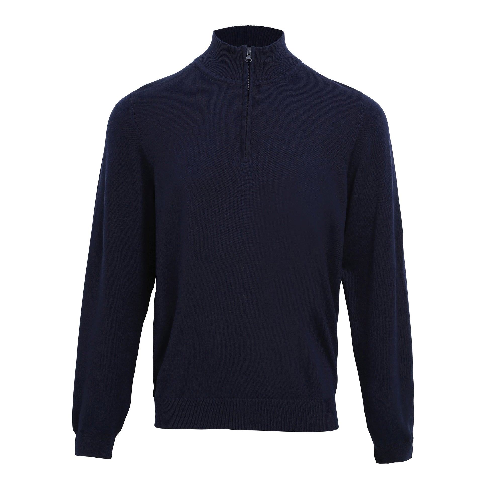 ¼ zip through collar fastening. Cotton rich yarn for a soft feel. Fine gauge knit. Set in sleeve with a ribbed knit cuffs and ribbed hem for fitted styling. WRAP certified. BSCI certified. Reach certified.