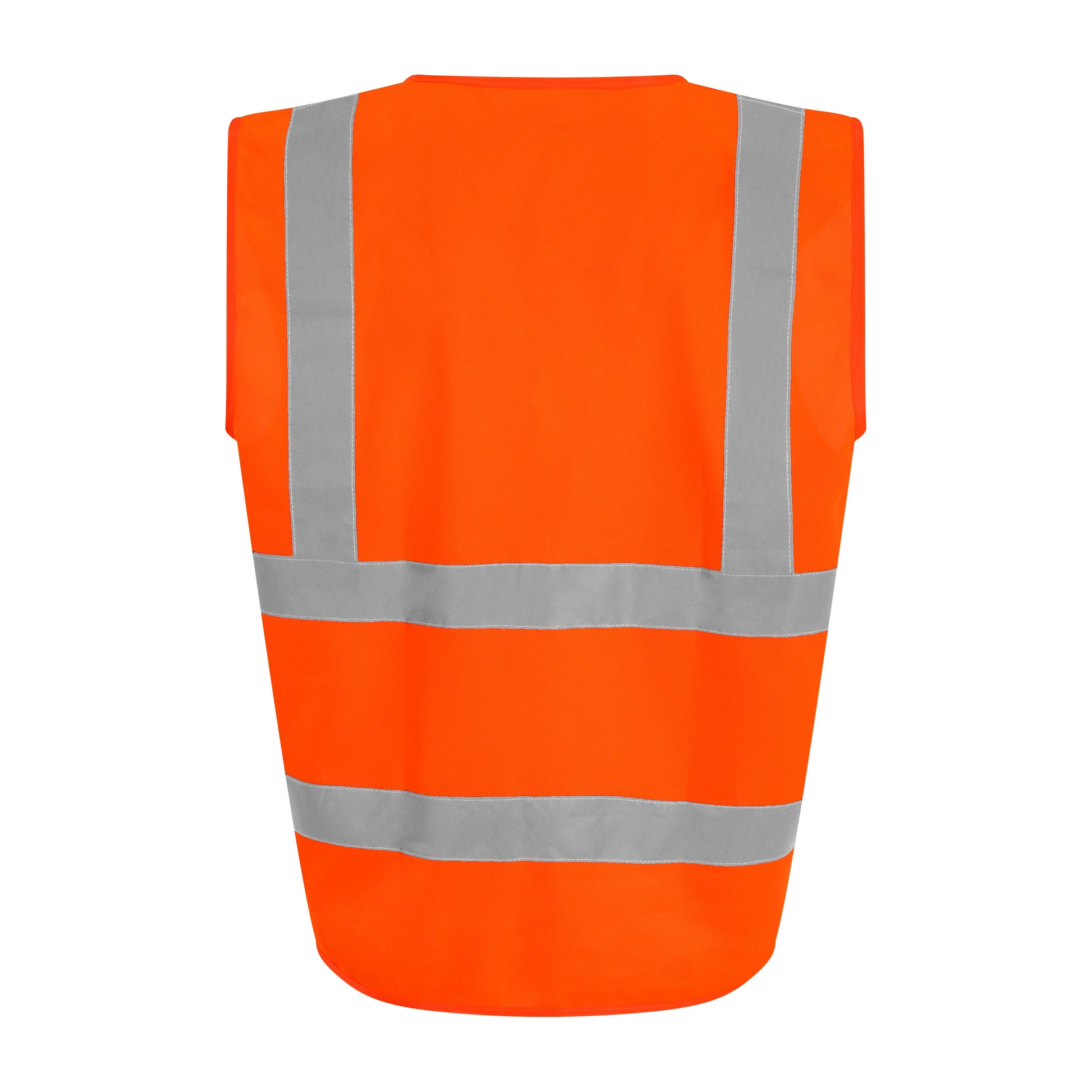 Certified EN ISO 20471:2013+A1:2016. RIS-3279-TOM ISSUE 1:2016 (Orange only). HV Orange & HV Yellow - Class 2. Two-Colour - Class 1. Solid Colours - Non Certified. Full front tear and release fastening. Over shoulder and around body reflective tape.